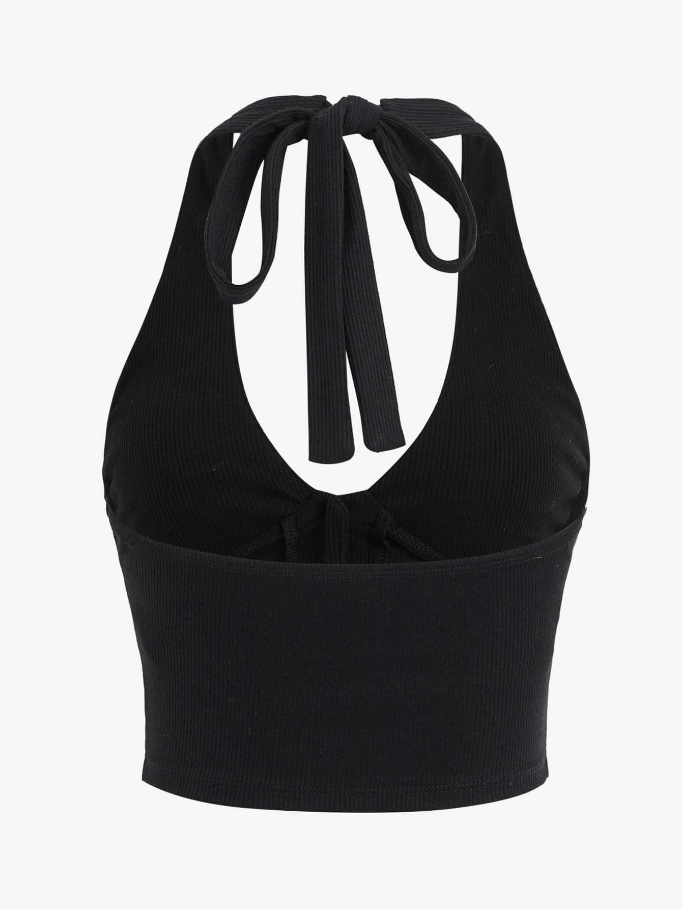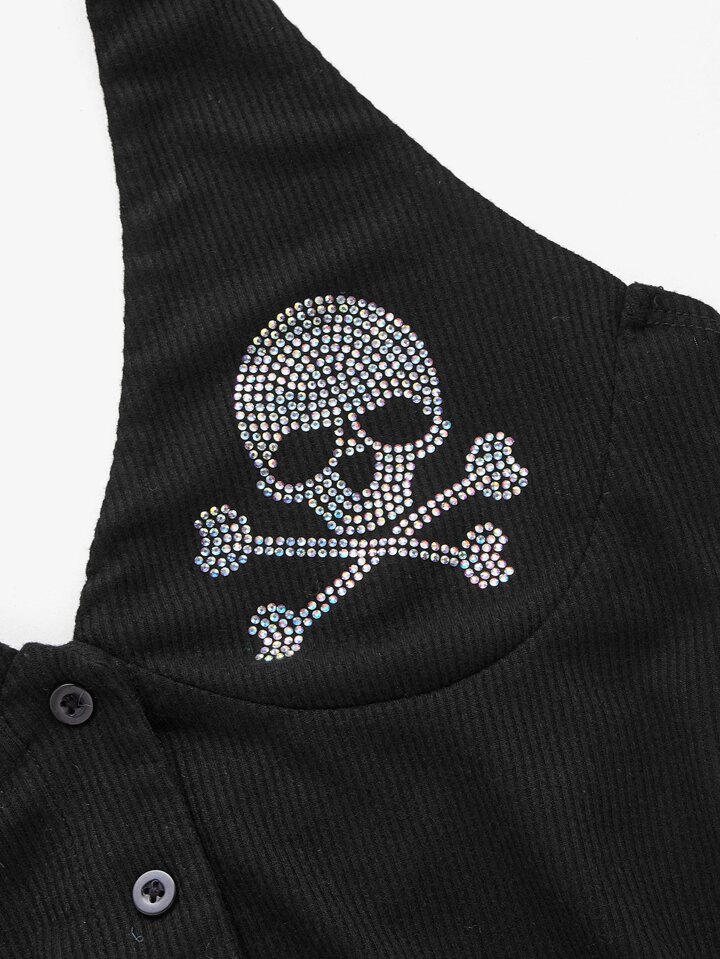 Kpop Rhinestone Skull Pattern Backless Asymmetrical Hem Halter Top