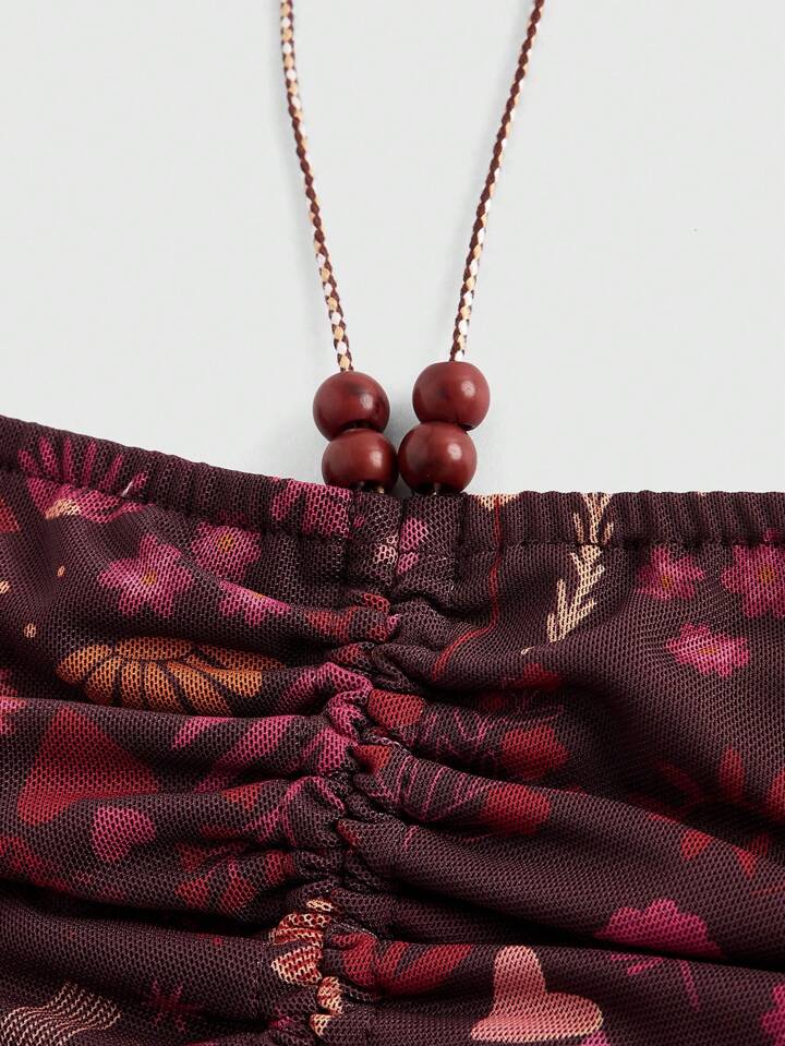 LAURA BARREIRO Bohemian Vintage Plant Printed Ruched Halter Top For Summer