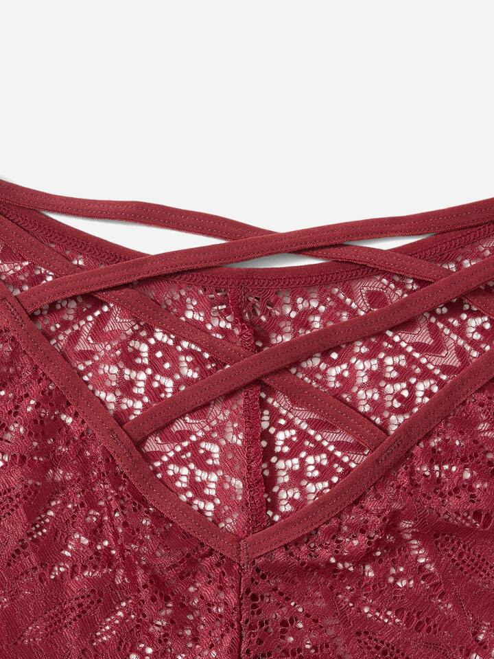 Lace Criss Cross Bow Decor Panty