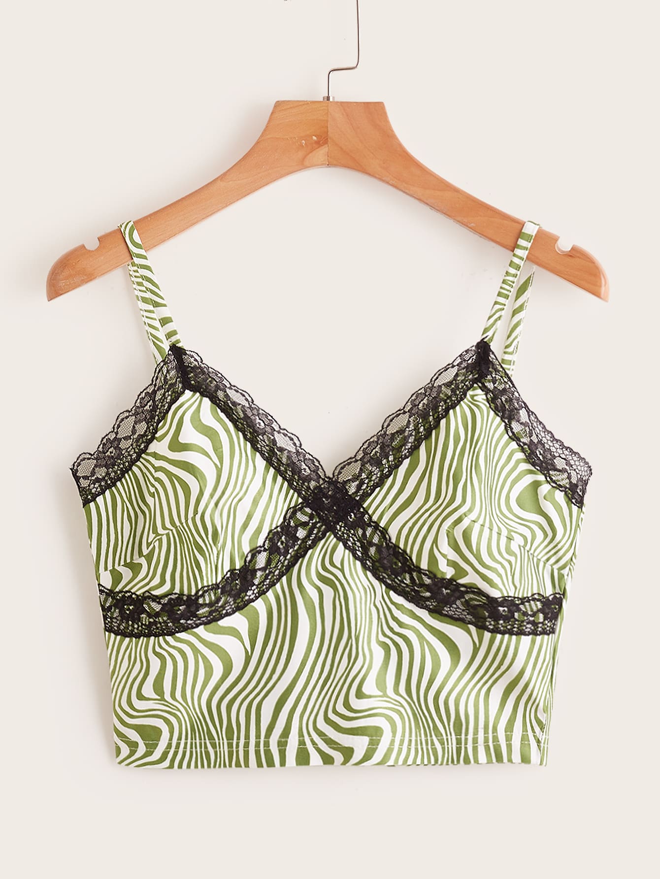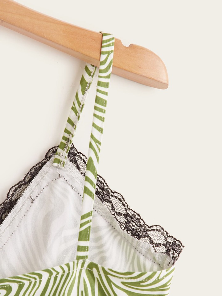 Lace Insert Zebra Striped Crop Cami