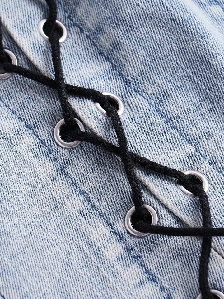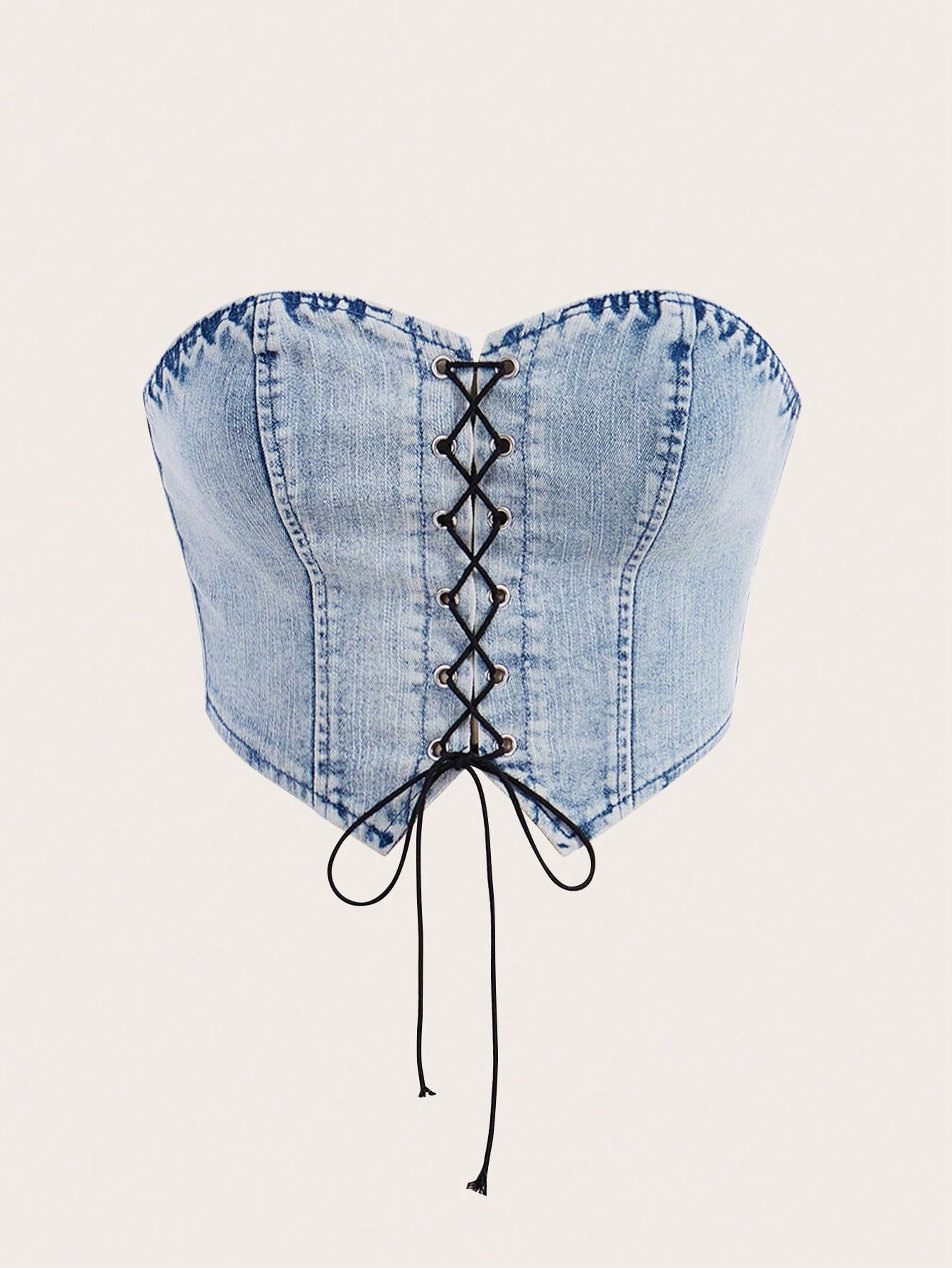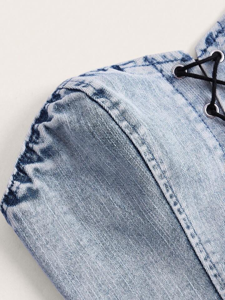 Lace Up Front Tube Denim Top