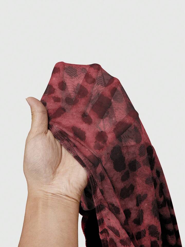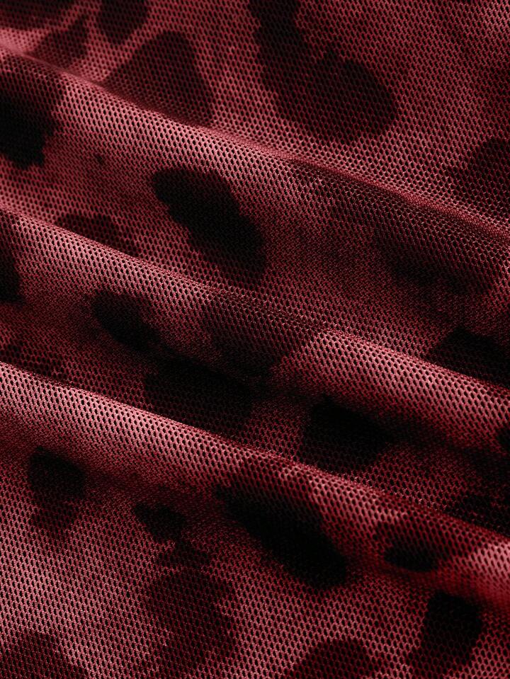 Leopard Print Square Neck Ruffle Design Sexy Women's Long Sleeve Blouse