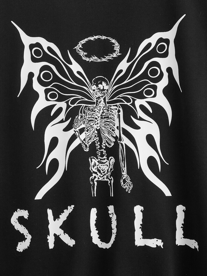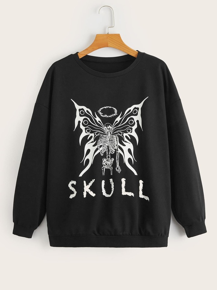 Letter Butterfly & Skull Graphic Sweatshirt