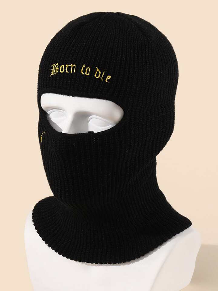 Letter Embroidered Balaclava Cap