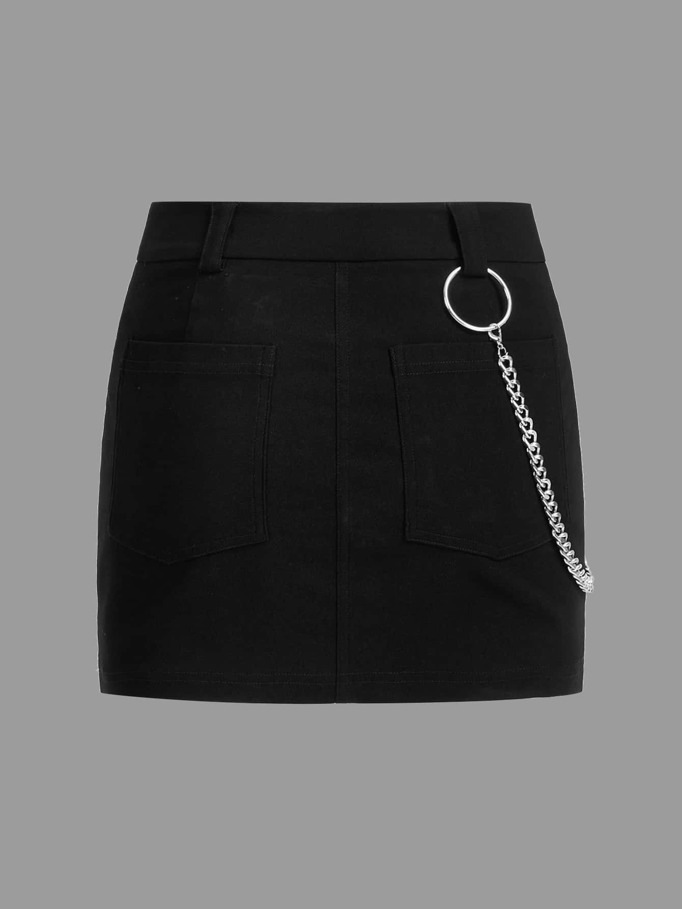 Letter & Floral Print Chain Detail Bodycon Skirt Without Belt