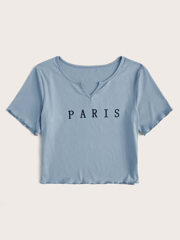 Letter Graphic Lettuce Trim Notch Neck Tee
