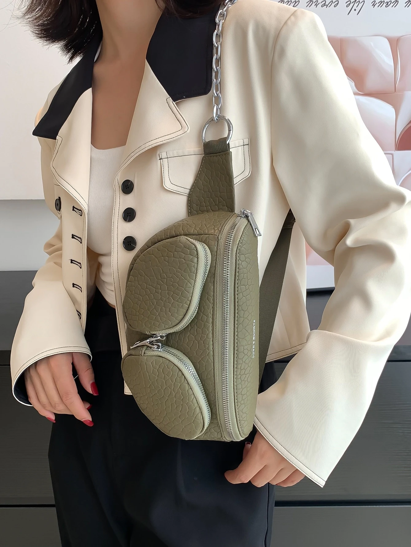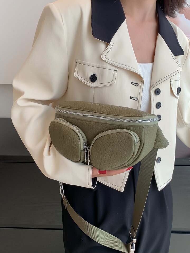 Letter Print Textured Bum Bag