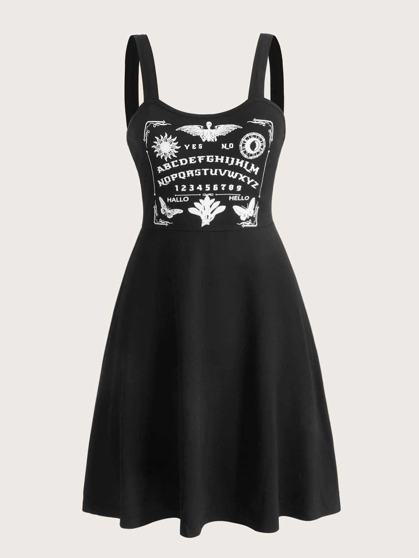 Letter Skull & Butterfly Graphic Dress