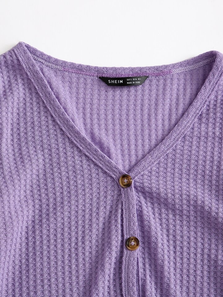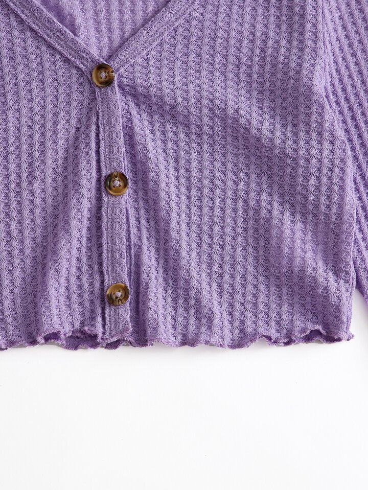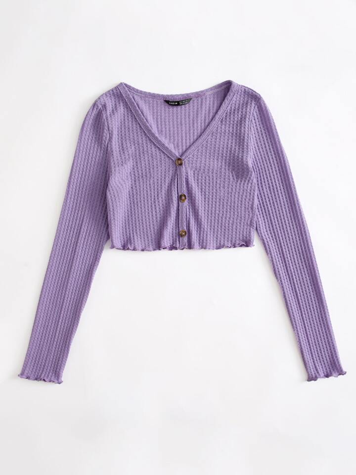 Lettuce Edge Waffle Knit Button Up Top