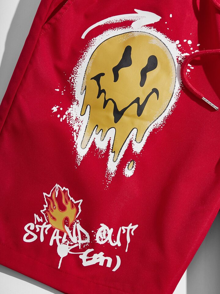 Loose Fit Men's Letter & Cartoon Face Print Drawstring Waist Shorts