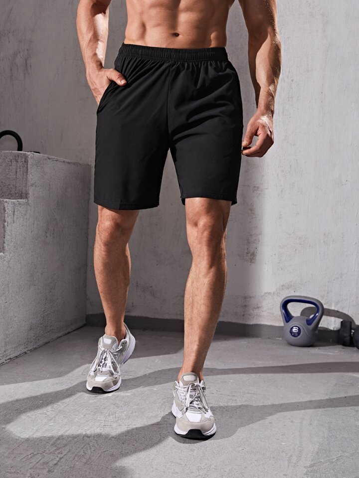 Manfinity Fitness Boyfriend Style Men Zipper Detail Sports Stretchy Shorts Summer Shorts