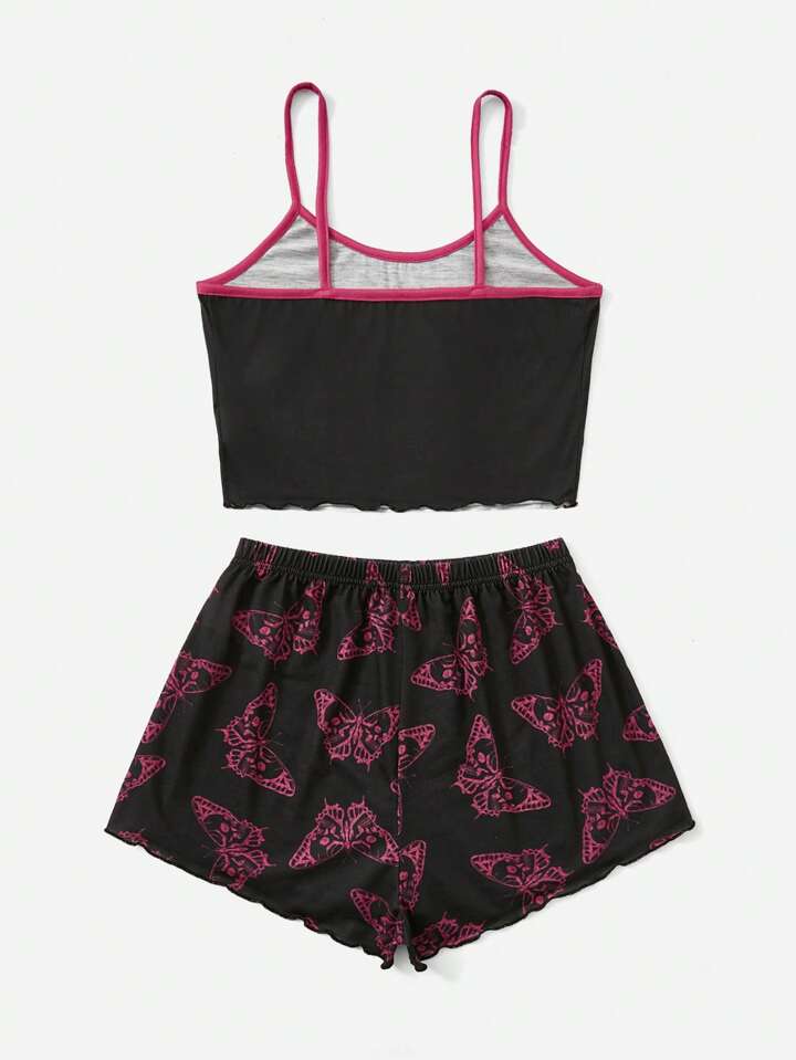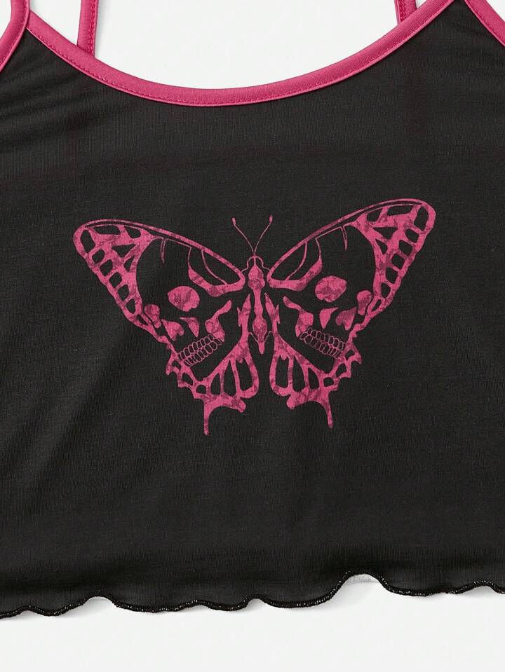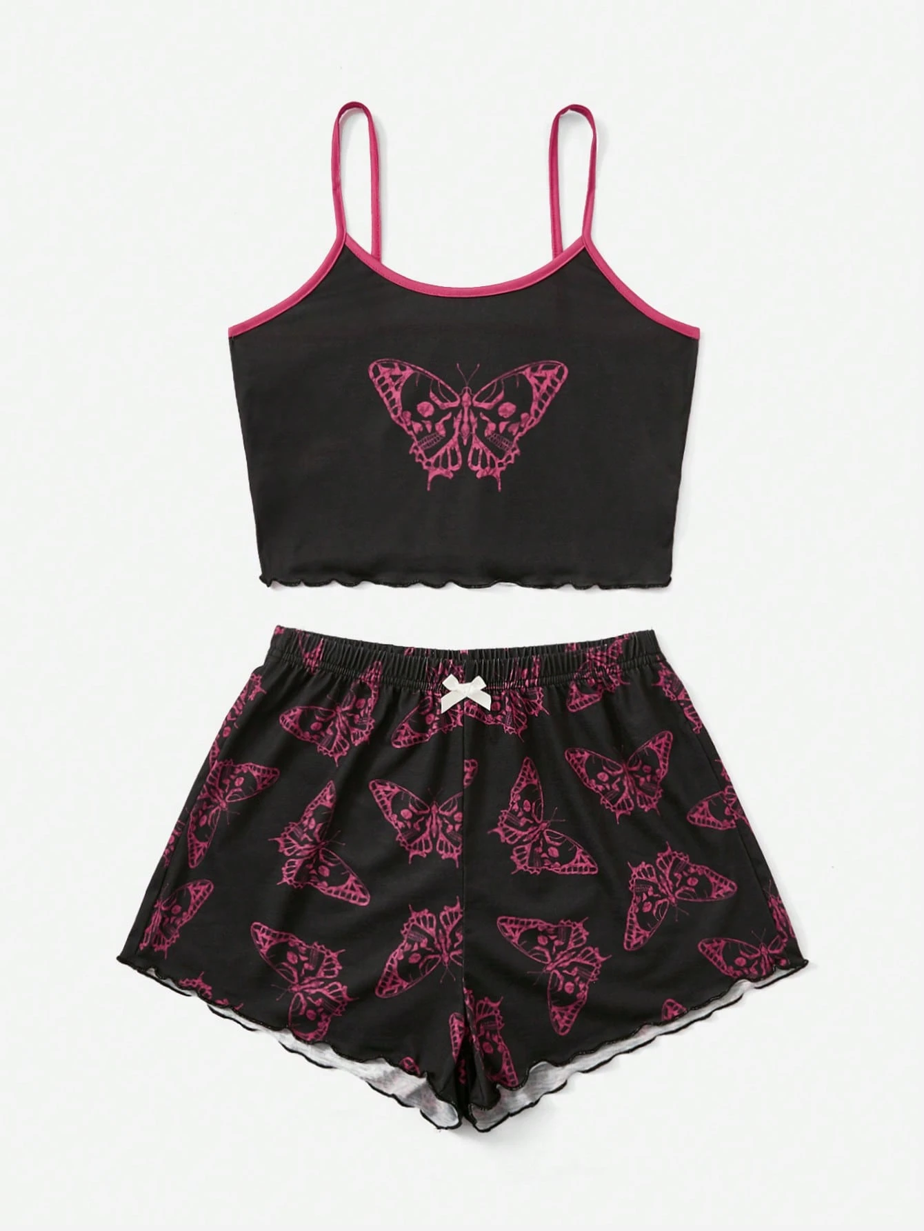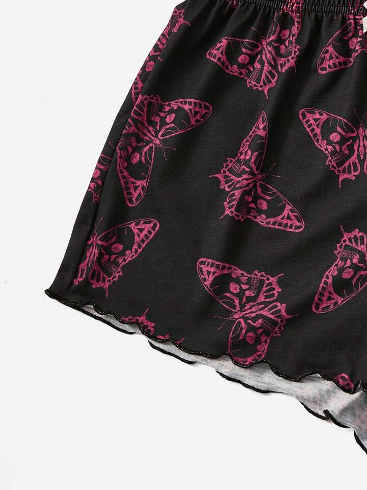 Maryam Alam Butterfly & Skull Print Lettuce Trim PJ Set
