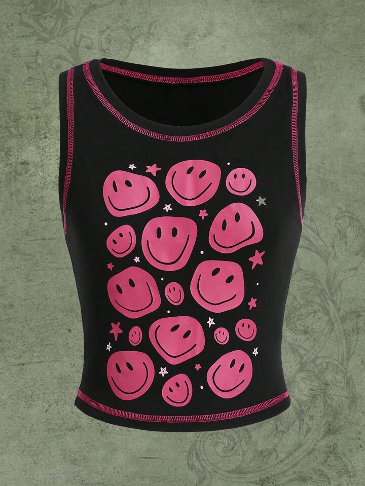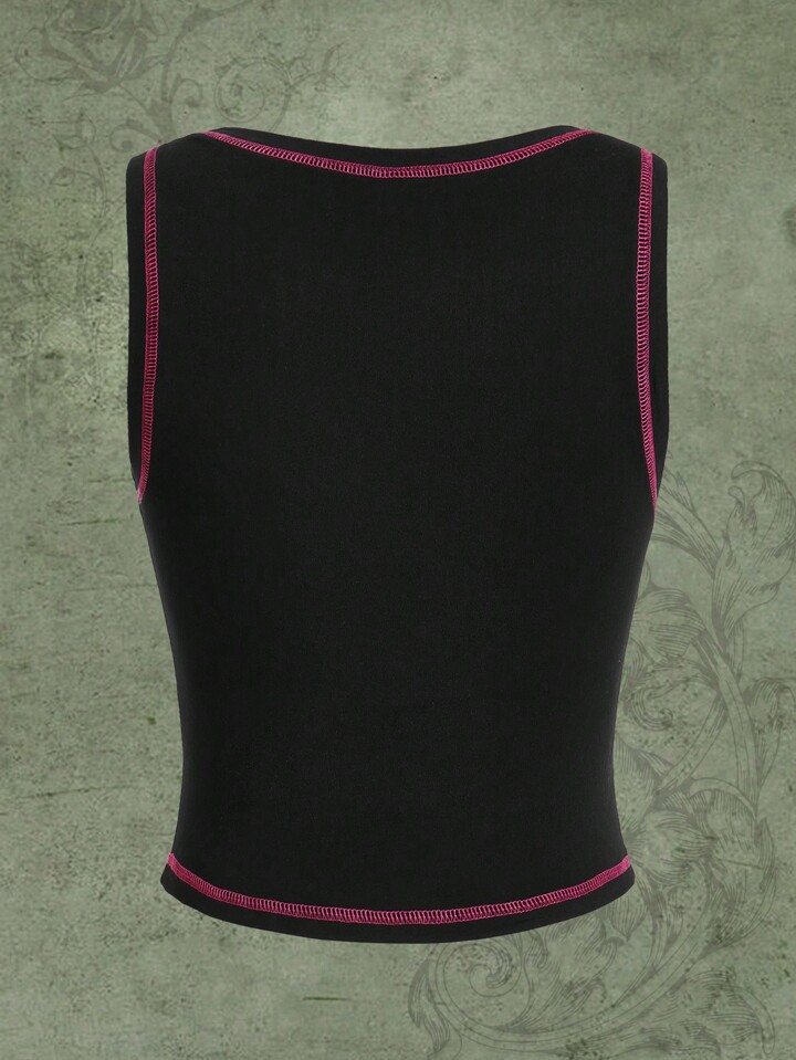 Maryam Alam Cartoon Graphic Top-stitching Tank Top