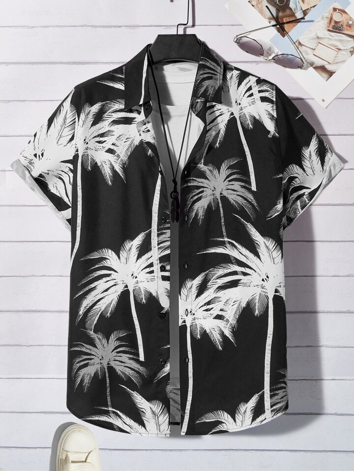 Men Coconut Tree Print Shirt Without Tee