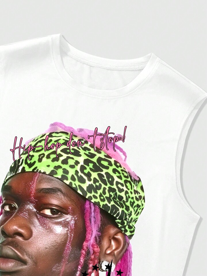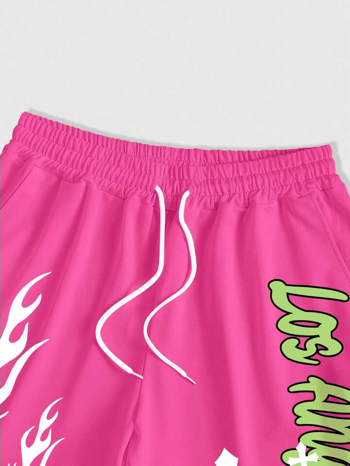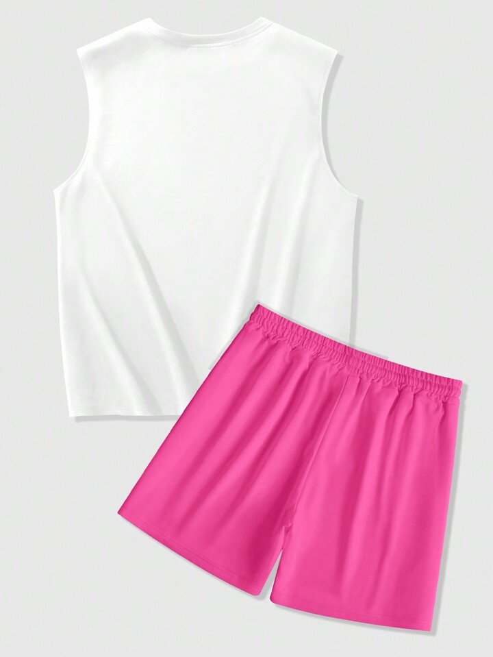 Men Figure & Slogan Graphic Tank Top & Shorts, School