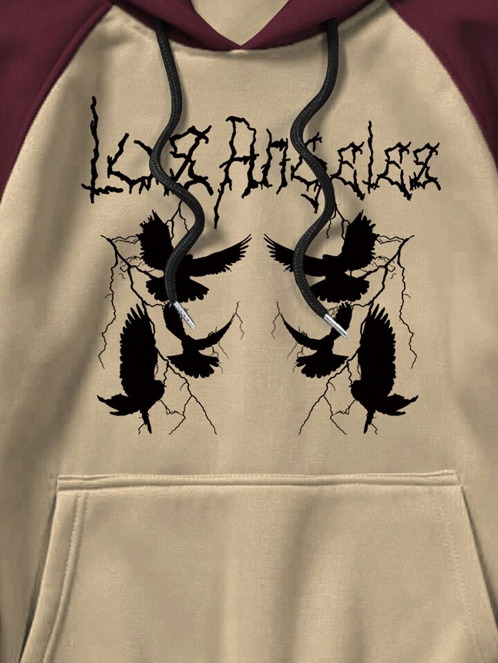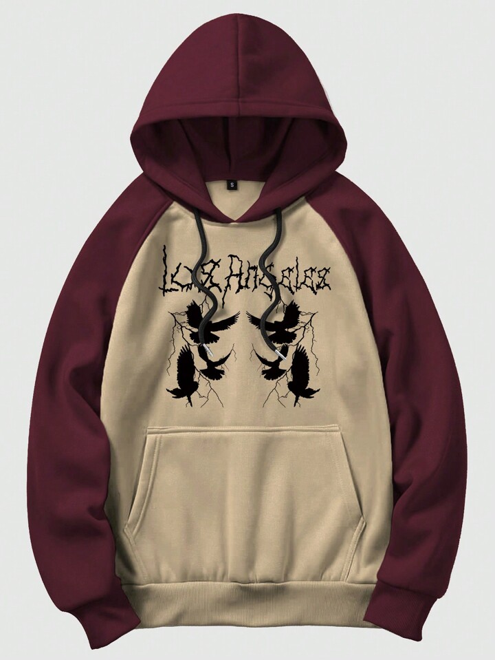 Men Gothic Print Color-Block Long Sleeve Hoodie