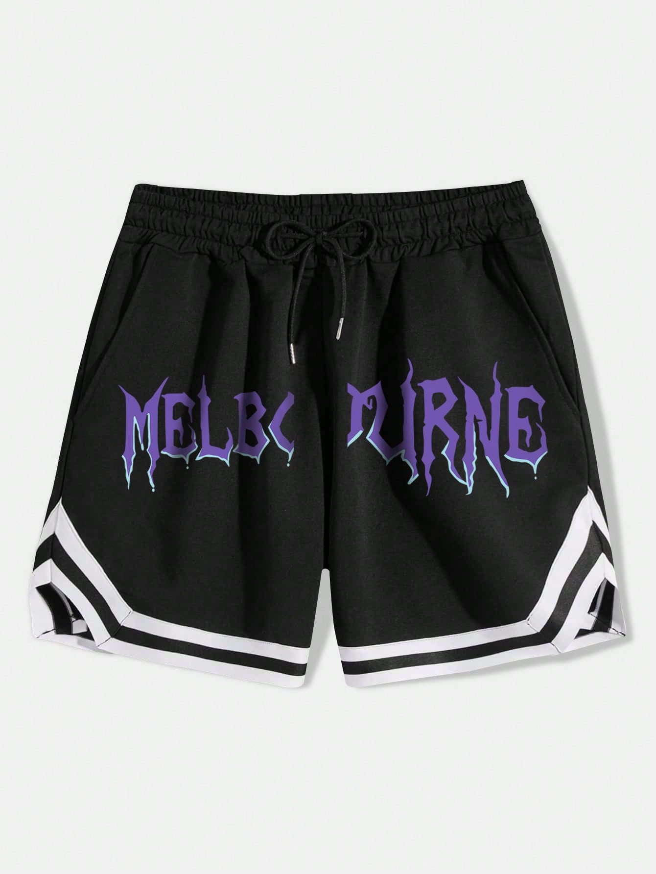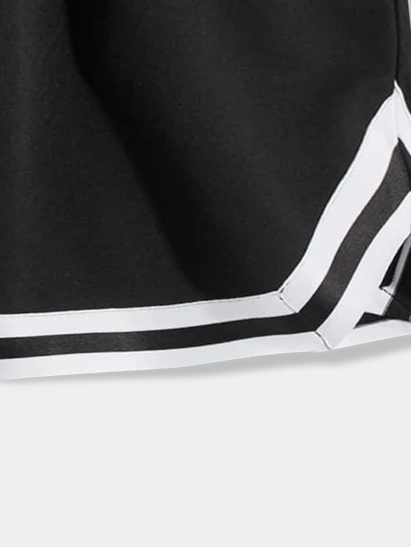 Men Letter Graphic Striped Trim Drawstring Waist Shorts