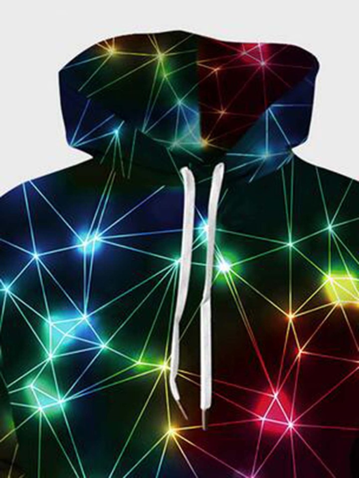 Men Neon Lights Geo Print Drawstring Hoodie