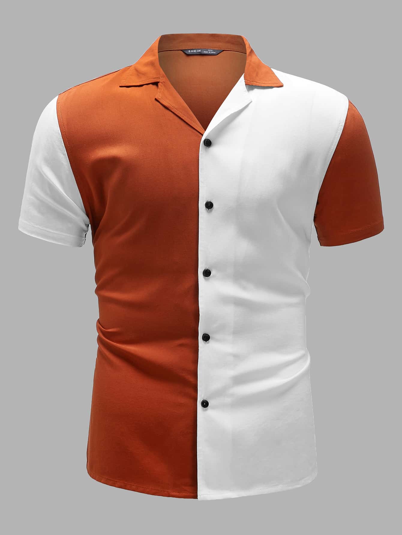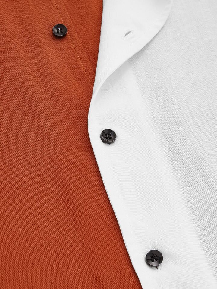 Men Notch Collar Two Tone Shirt