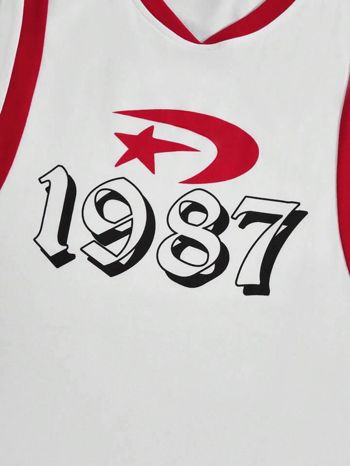 Men Summer Casual Color Block Striped Number Printed Tank Top