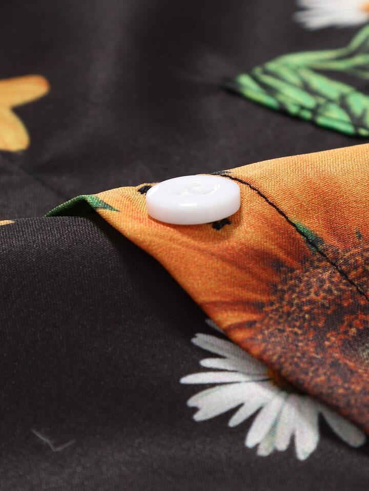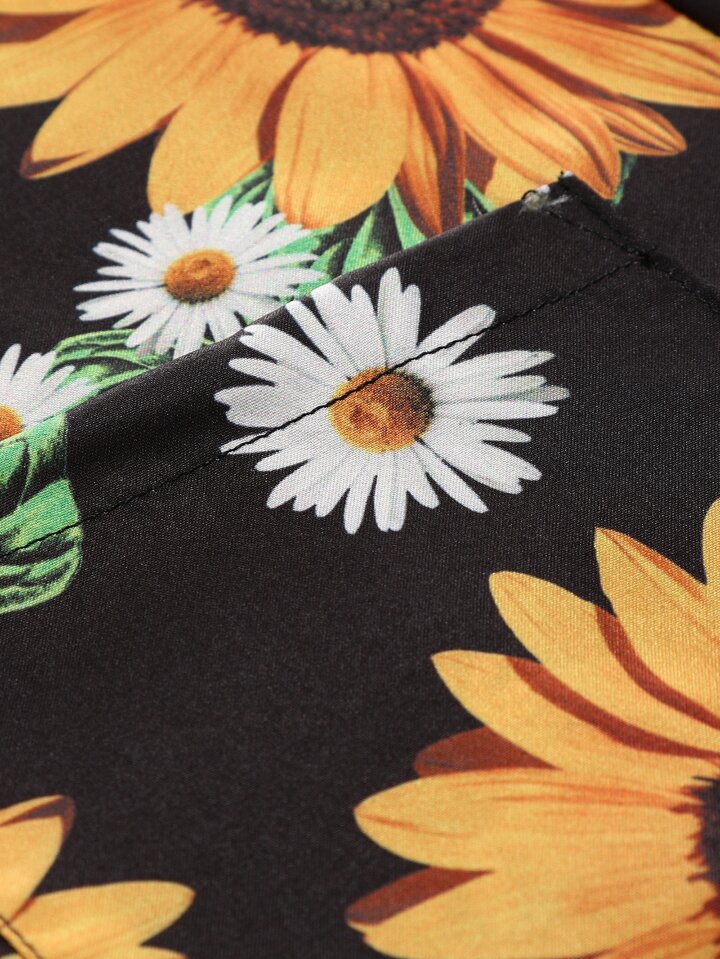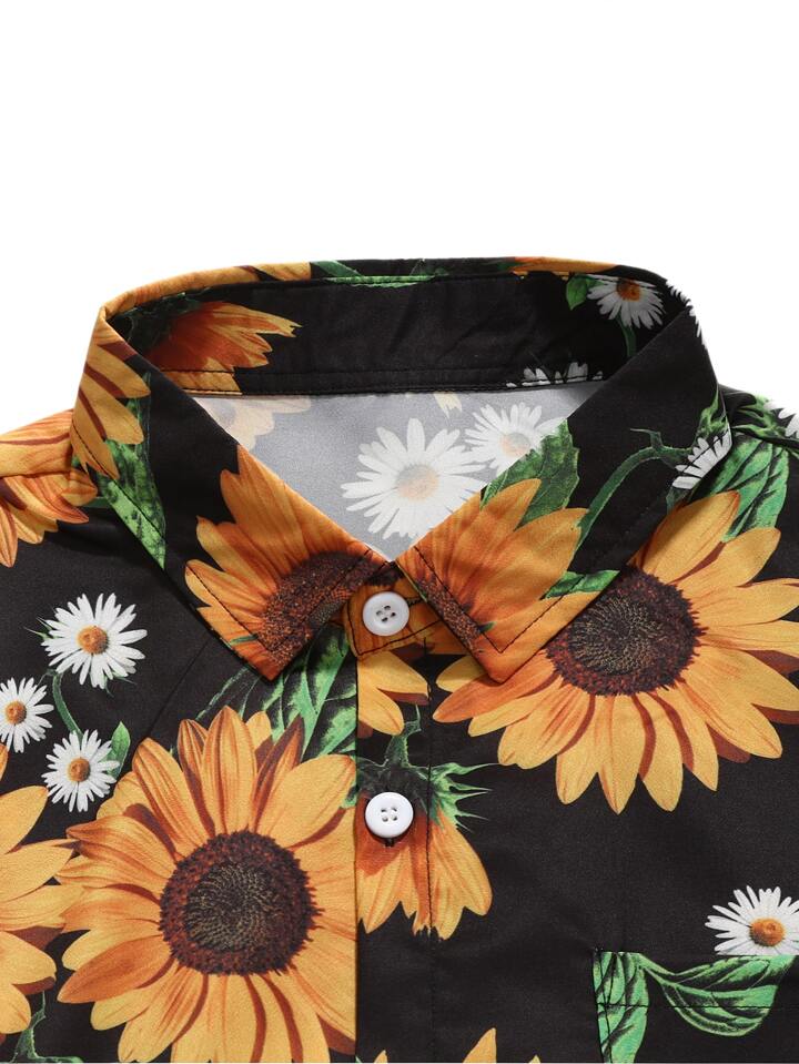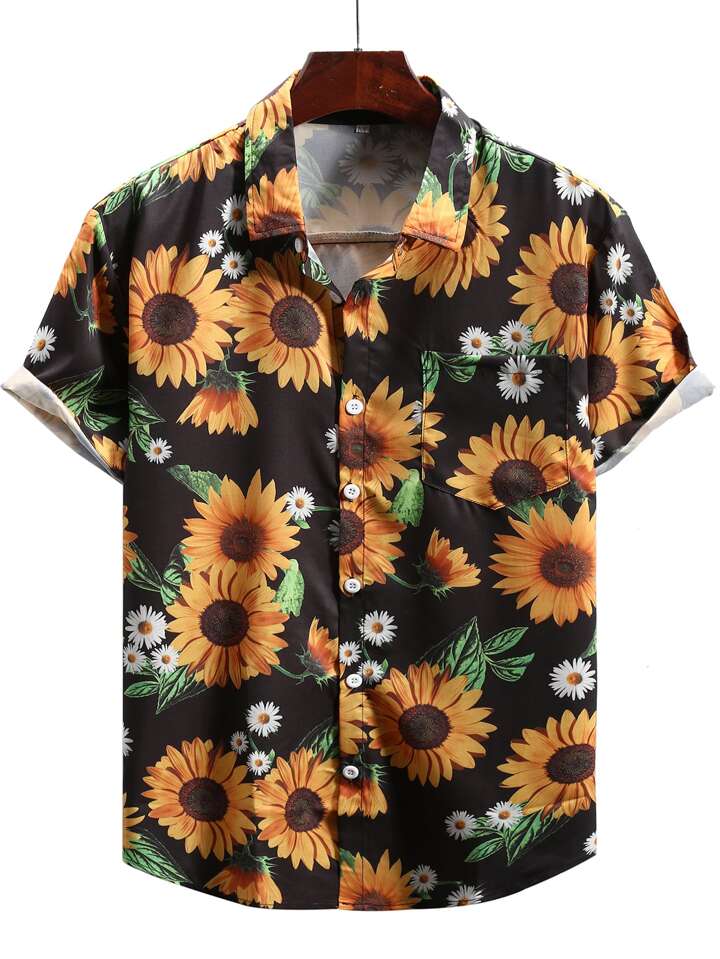 Men Sunflower Print Pocket Shirt