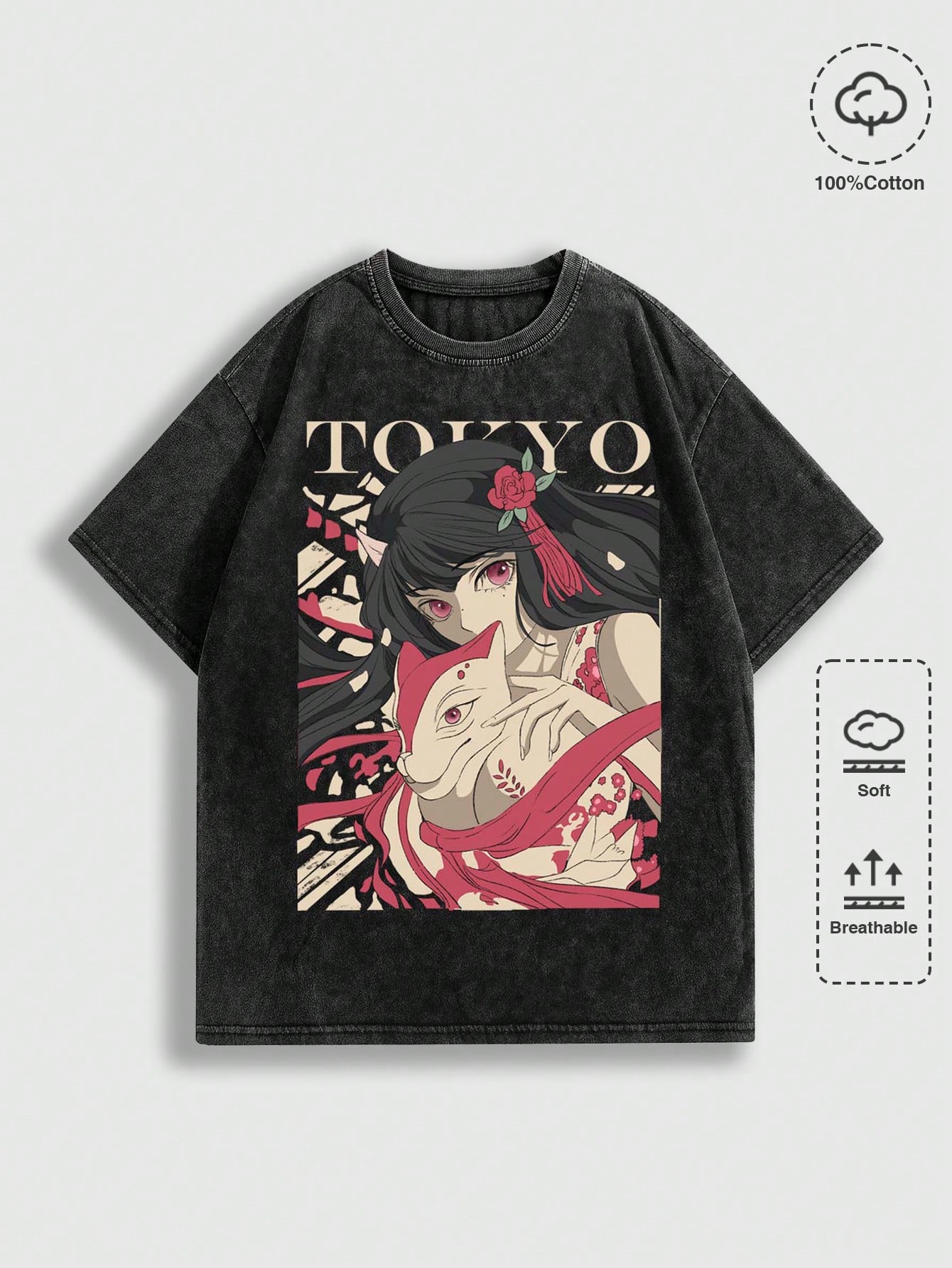 Men's Anime Casual Japan Style Fox Mask Graphic T-Shirt