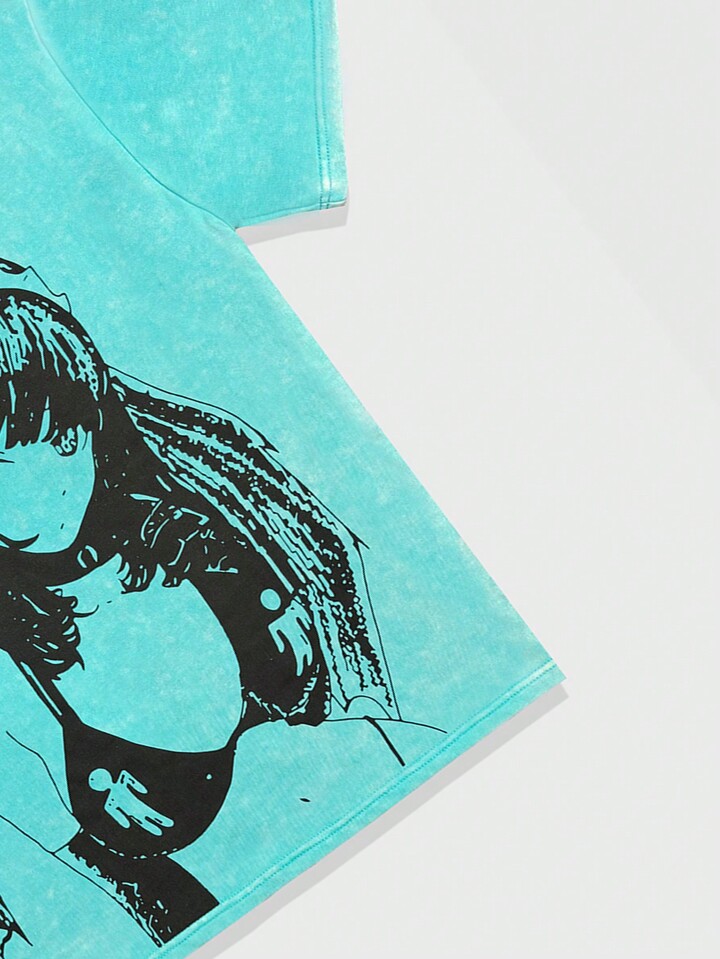 Men's Anime Round Neck Short Sleeve Figure Print Casual T-Shirt For Daily Wear