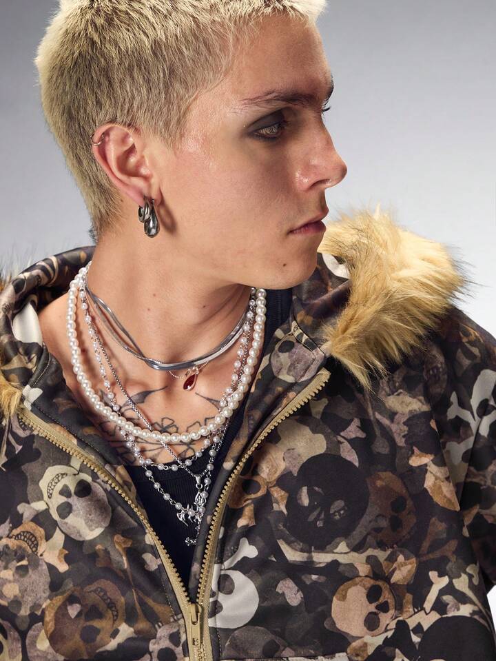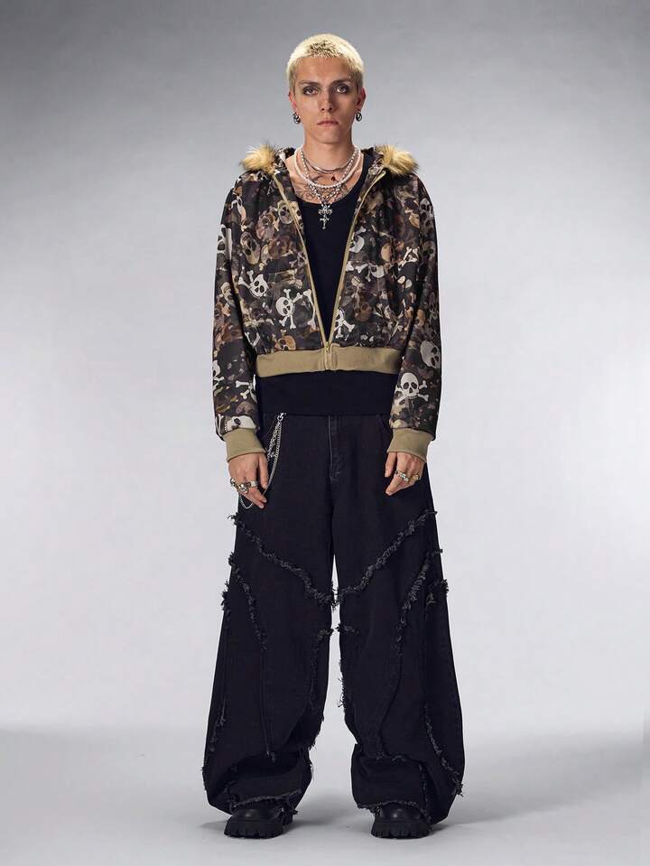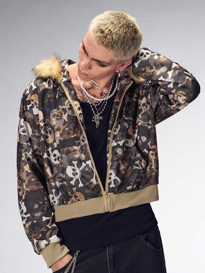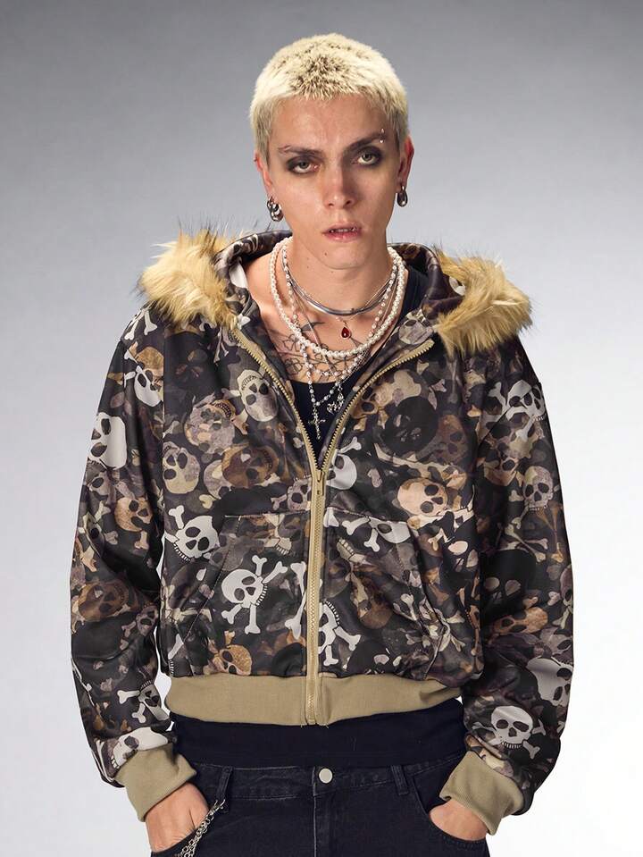 Men's Autumn/Winter Furry Skull Printed Casual Hoodie Sweatshirt