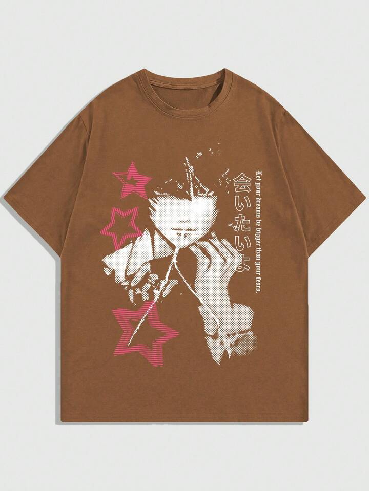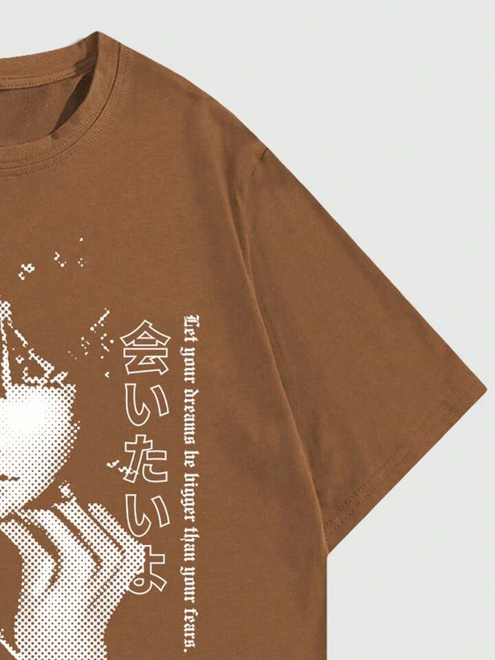 Men's Casual Anime Cartoon Character Print Ed T-Shirt, Summer