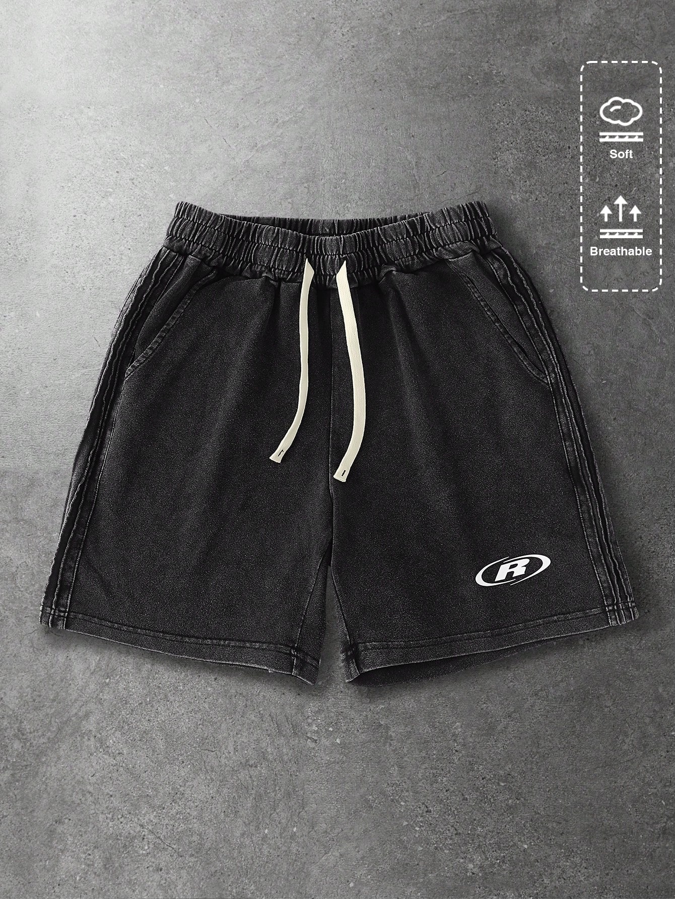 Men's Casual Fashion Street Daily Commute Letter Print Drawstring Waist Slant Pocket Washed Loose Shorts, Summer