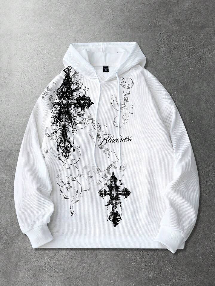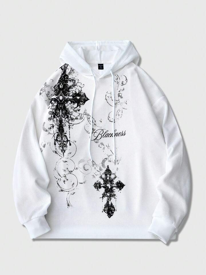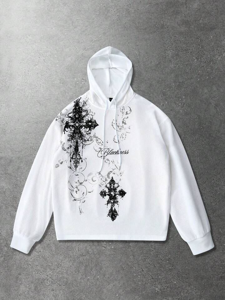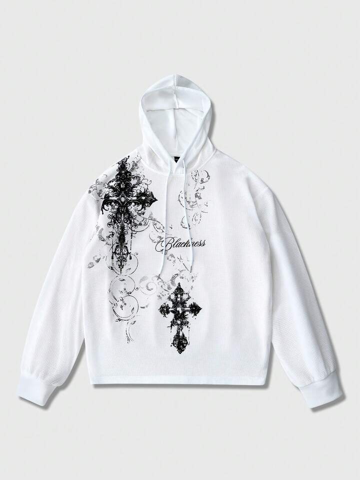 Men's Casual Gothic Cross Print Hoodie Sweatshirt, Autumn