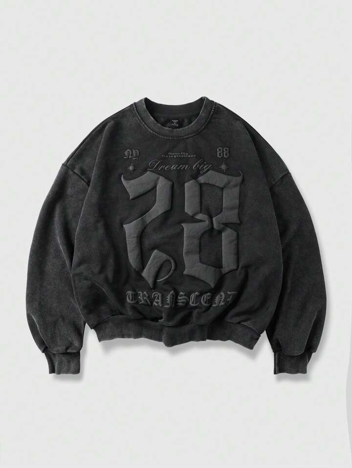 Men's Casual Letter Embossed Sweatshirt, Autumn