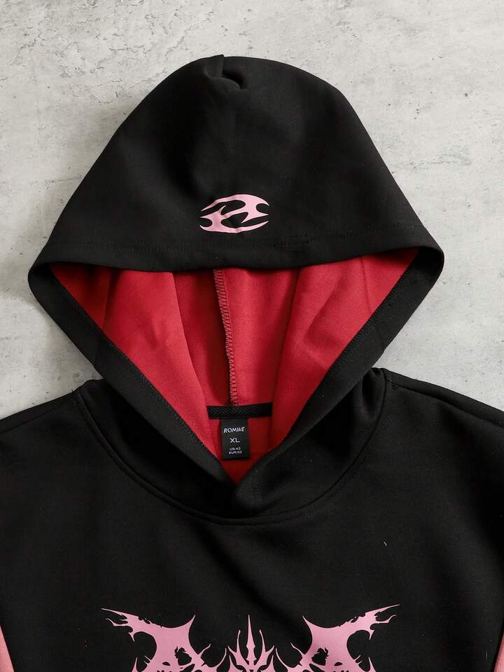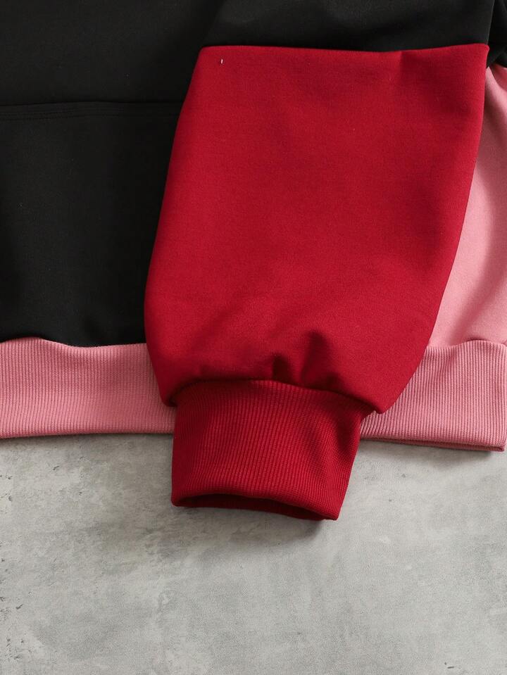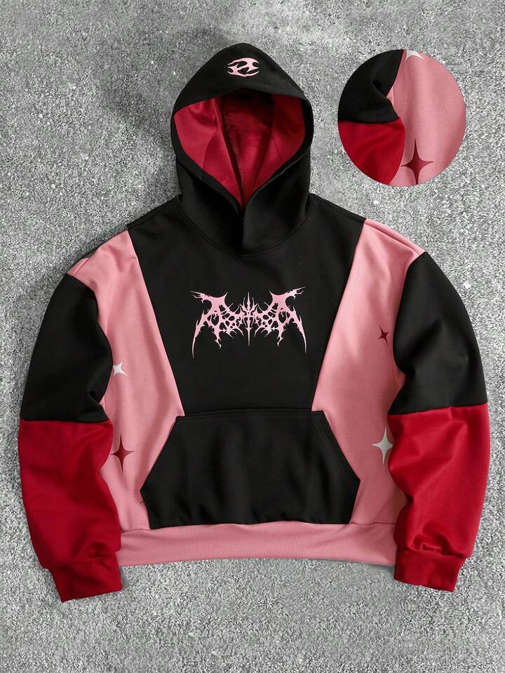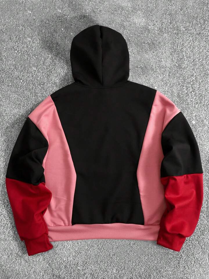 Men's Contrast Color Patchwork Hoodie, Loose Fit