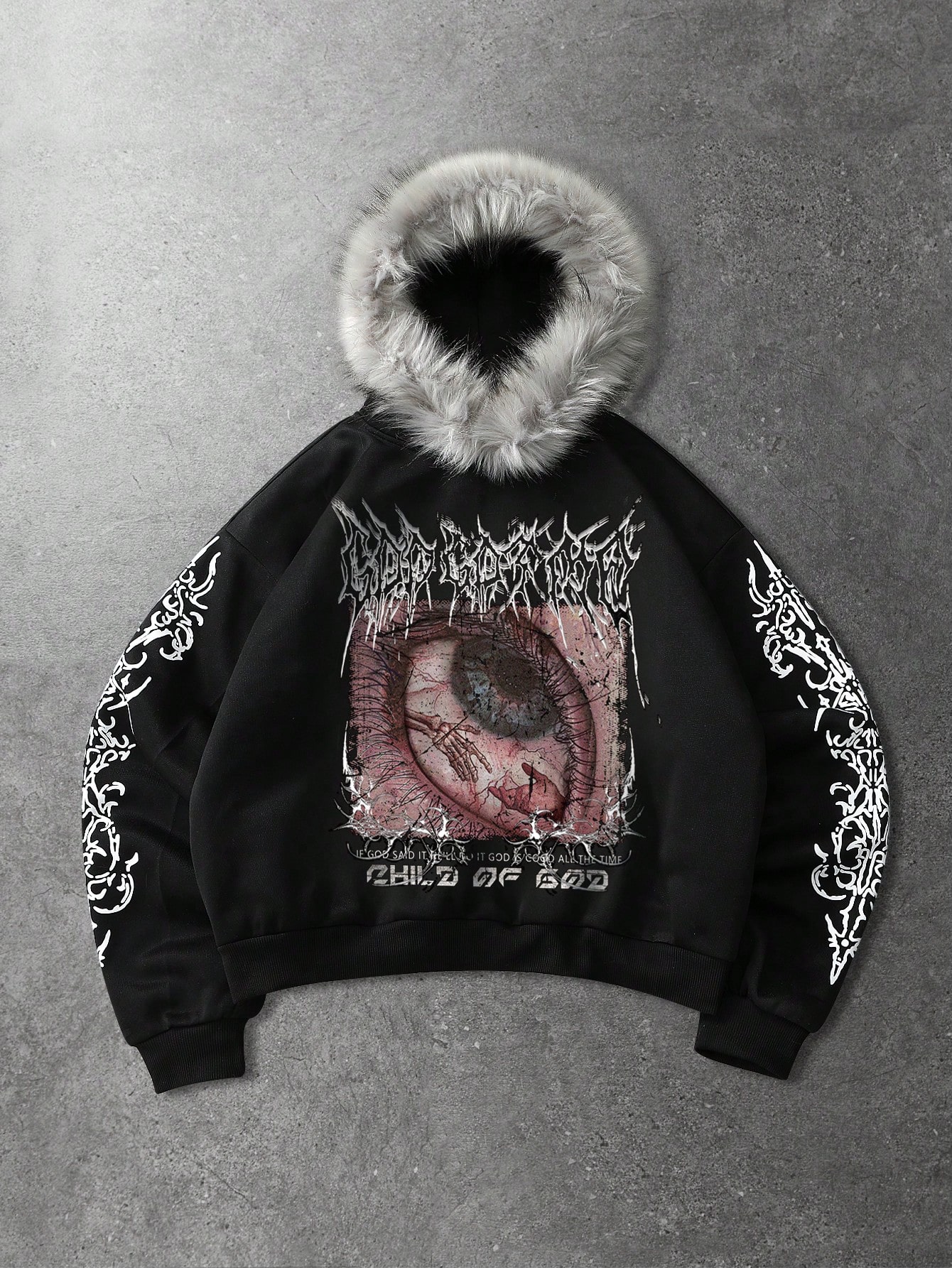 Men's Eye Pattern Hooded Casual Pullover Sweatshirt, Versatile For Commuting, Autumn/Winter
