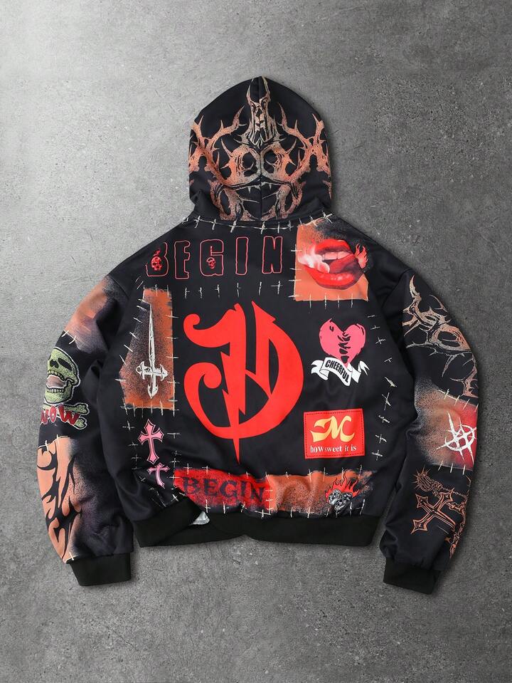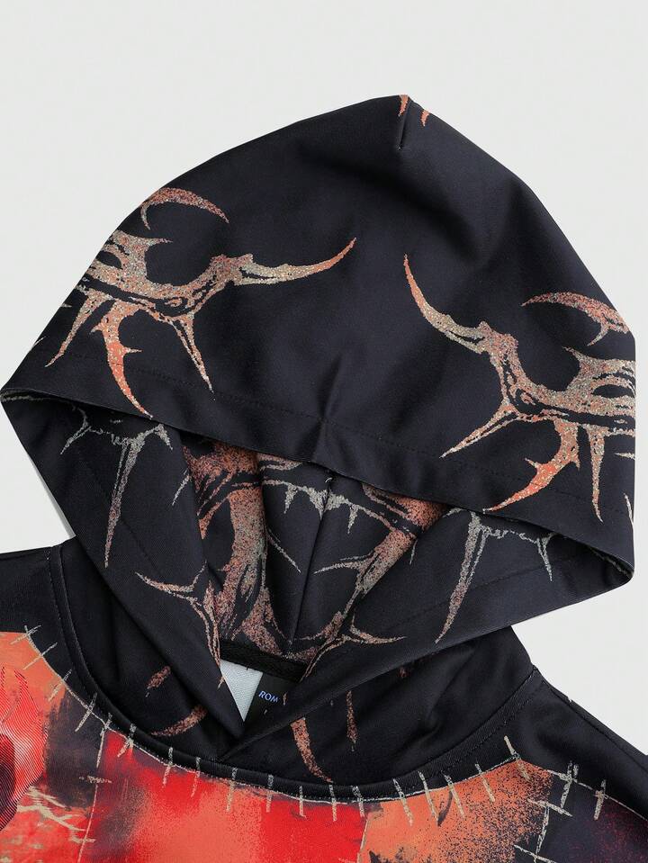 Men's Fashionable Loose Casual Versatile Anime Print Hoodie