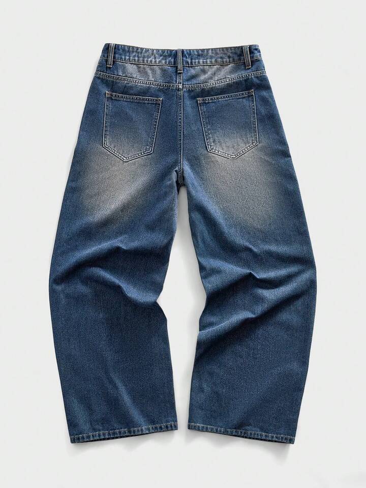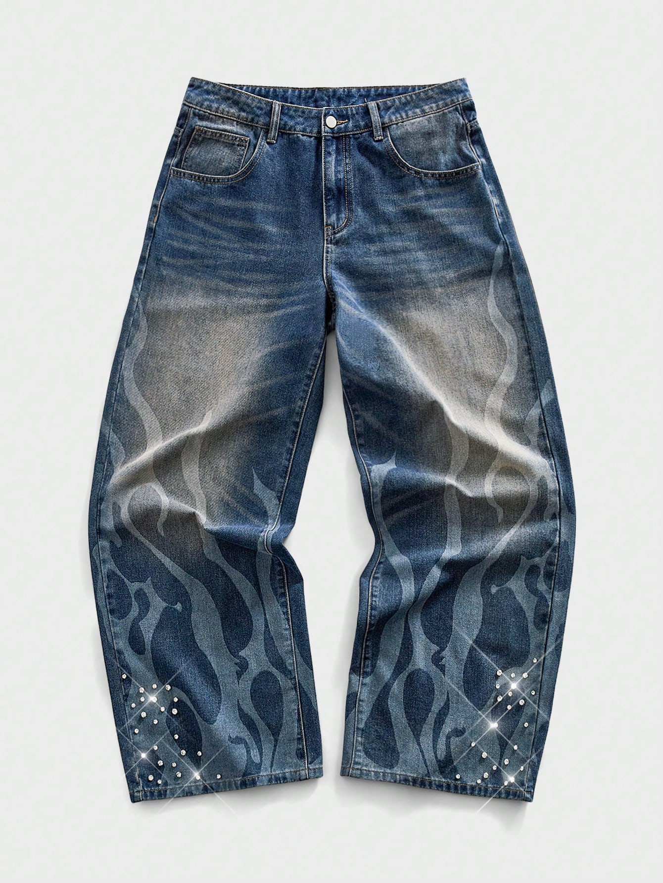 Men's Flame Pattern Pocket Wide Leg Loose Casual Jeans