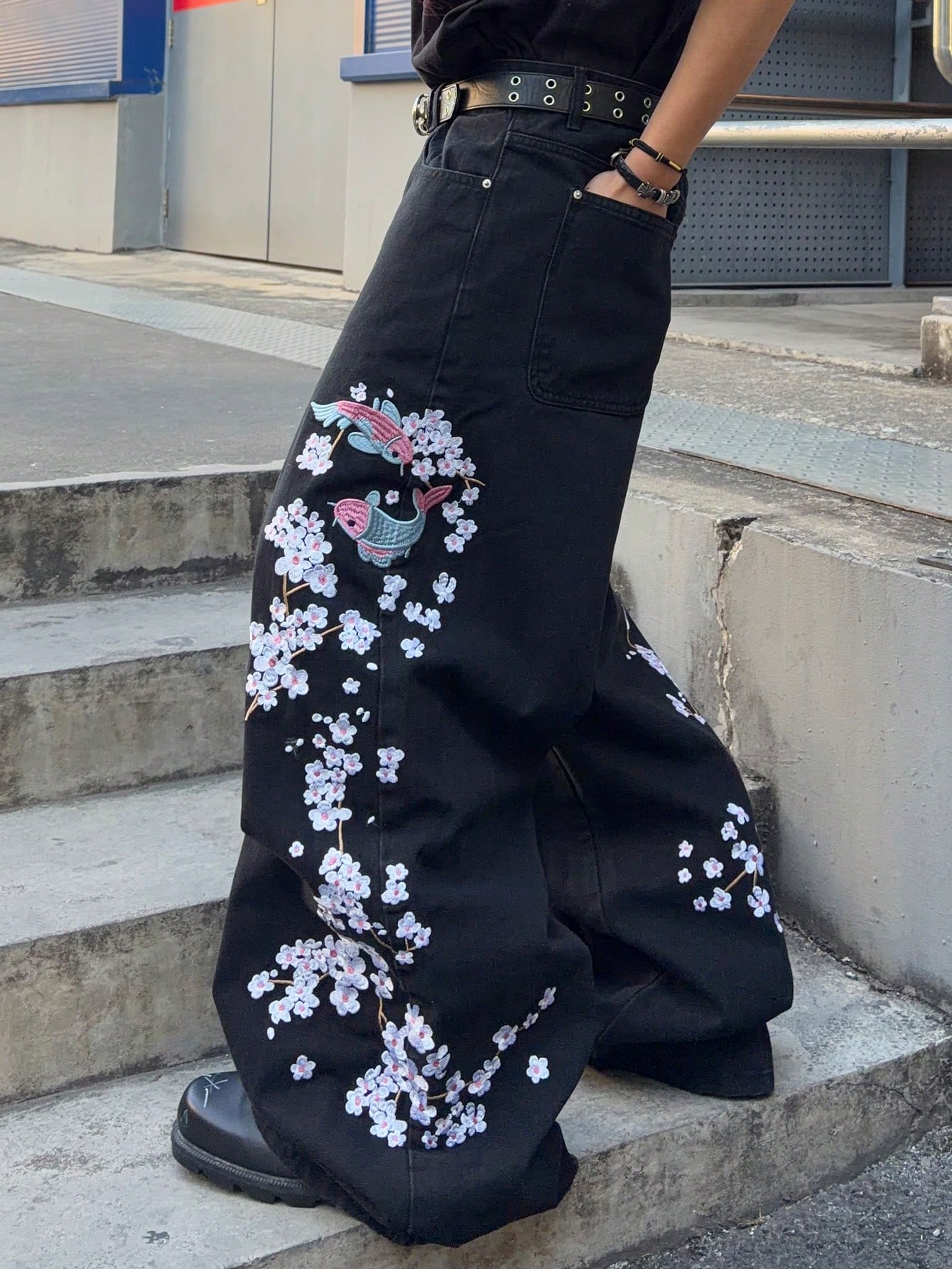 Men's Floral Embroidery Pattern Loose Fit Jeans