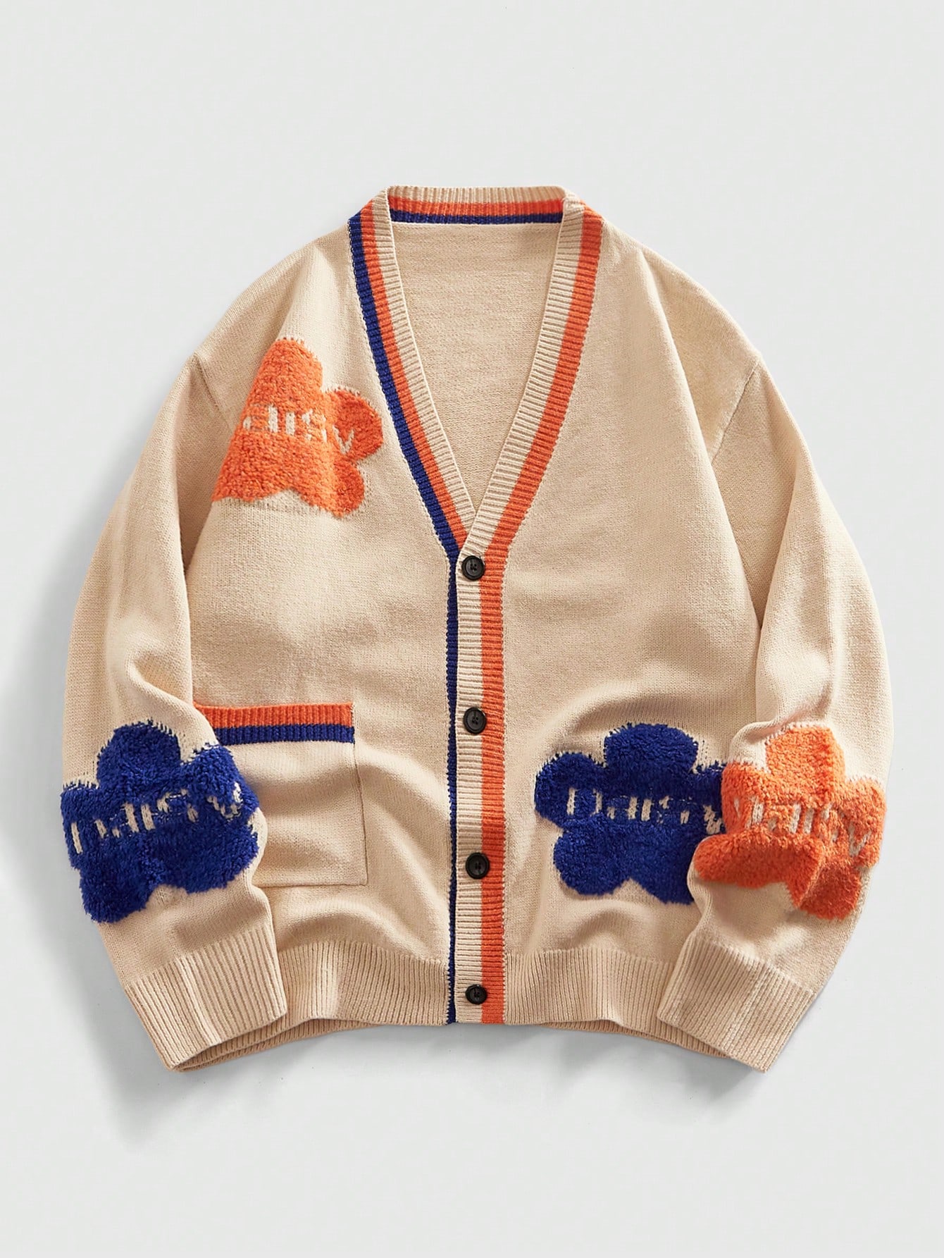 Men's Floral Print Open Front Knit Sweater, Street Fashion