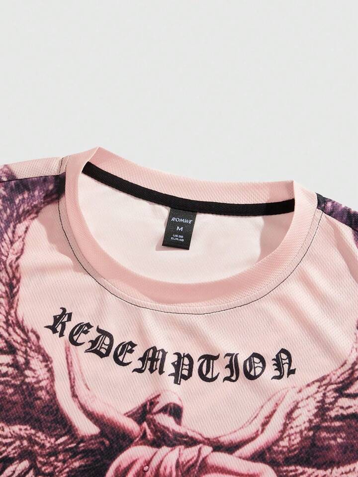 Men's Gothic Graphic Print Round Neck Short Sleeve T-Shirt, Summer, Halloween