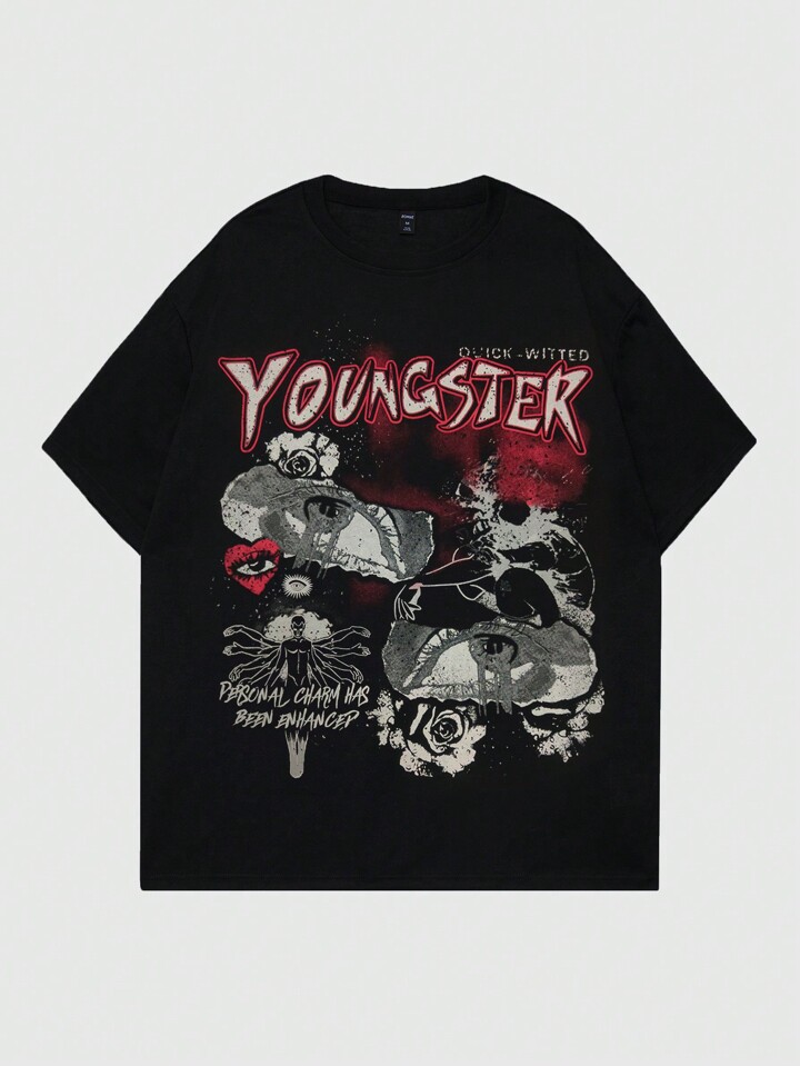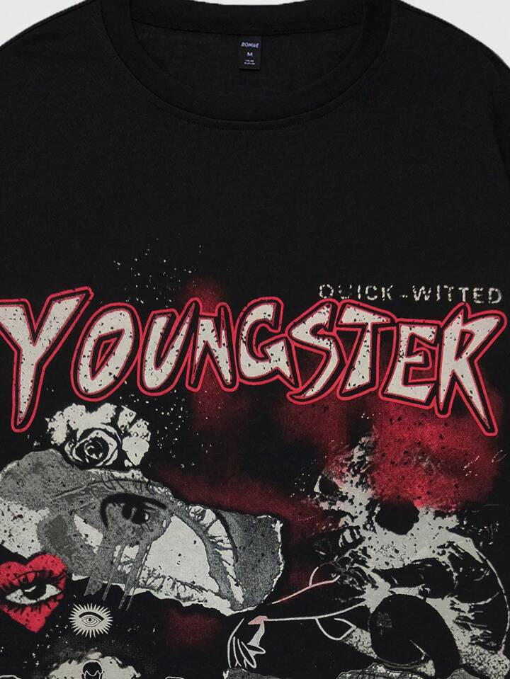 Men's Gothic Letter Print Round Neck Short Sleeve Casual T-Shirt, Halloween