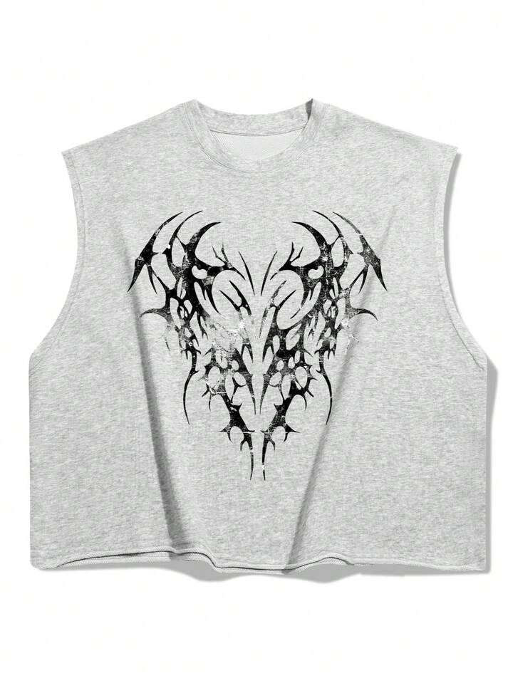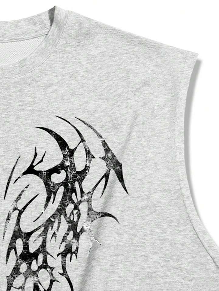 Men's Gothic Print Crew Neck Sleeveless Cropped Tank Top