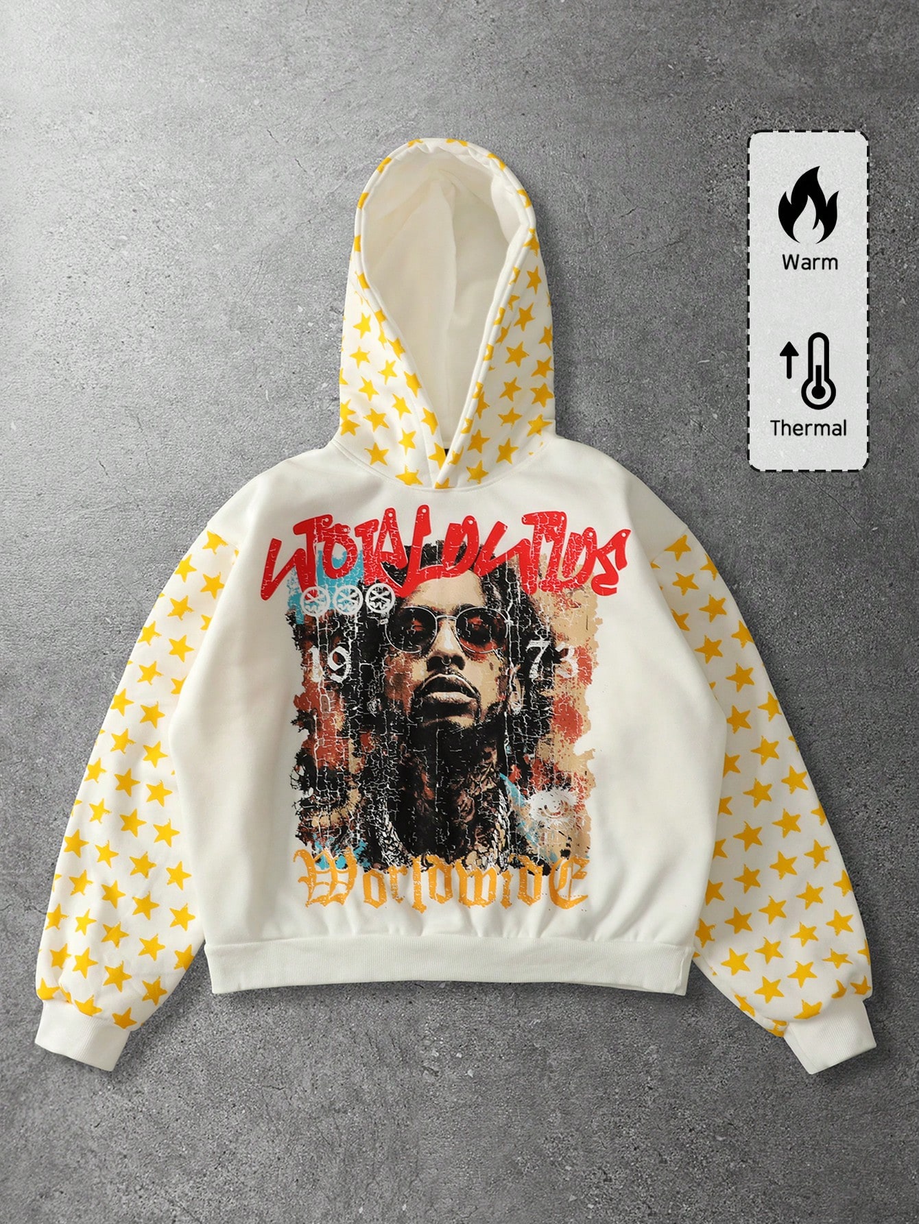 Street Life Men's Graphic Print Long Sleeve Hoodie, Vintage Street Style