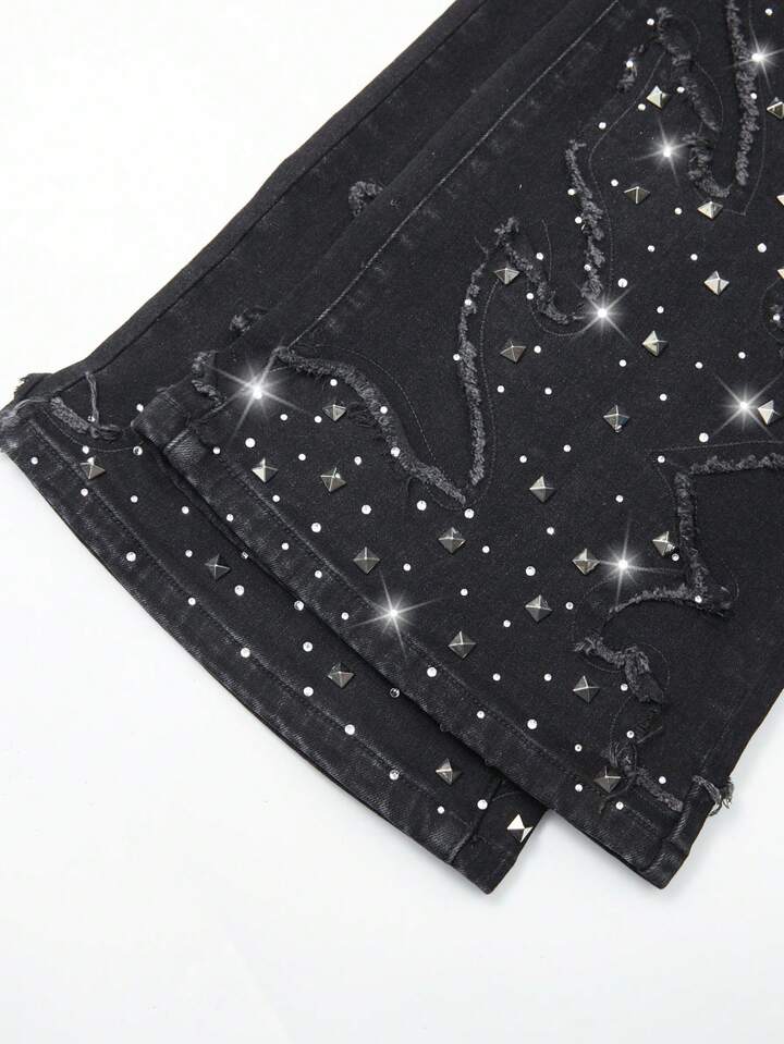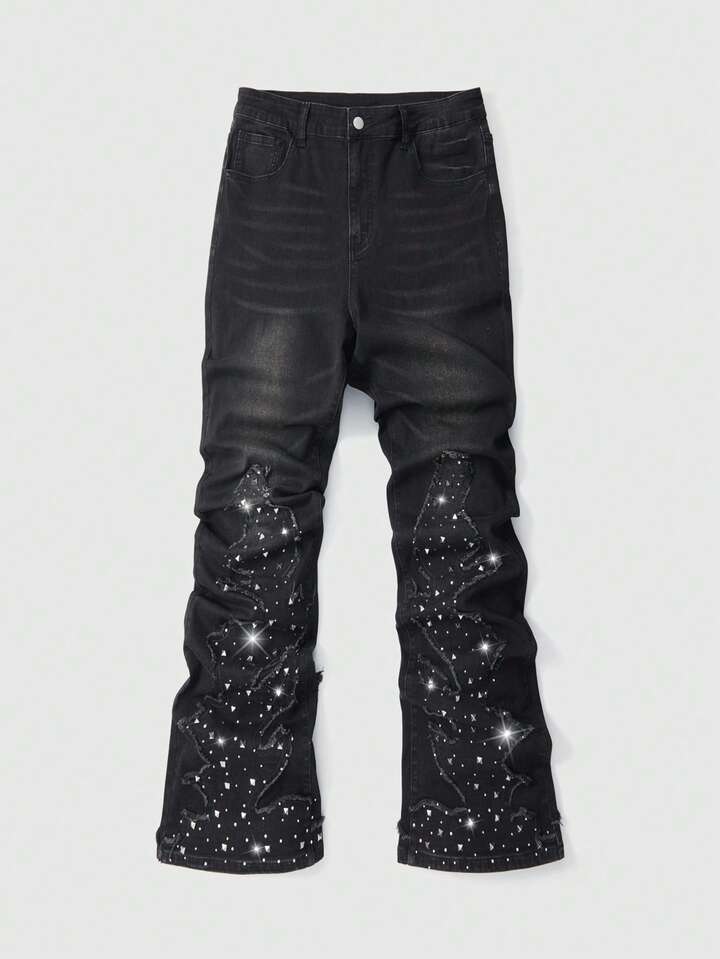 Men's High Waist Fashionable Rhinestone Embellished Casual Jeans