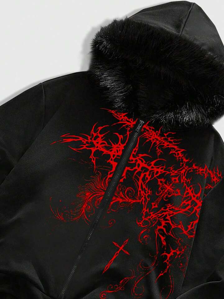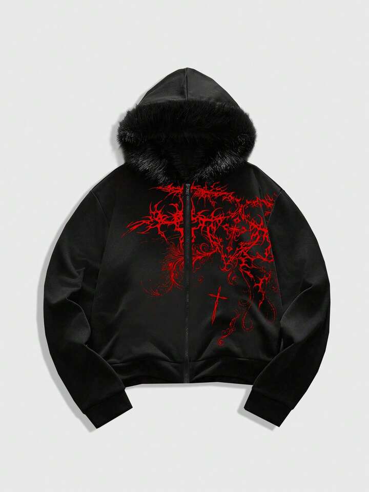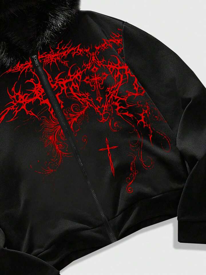 Men's Minimalist Gothic Printed Hooded Long Sleeve Sweatshirt Sweatshirt