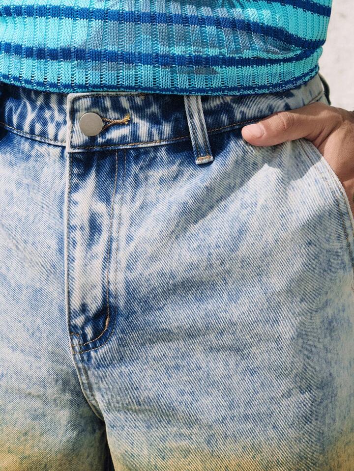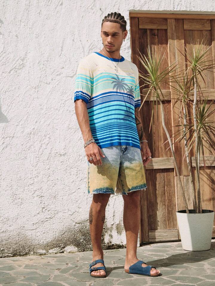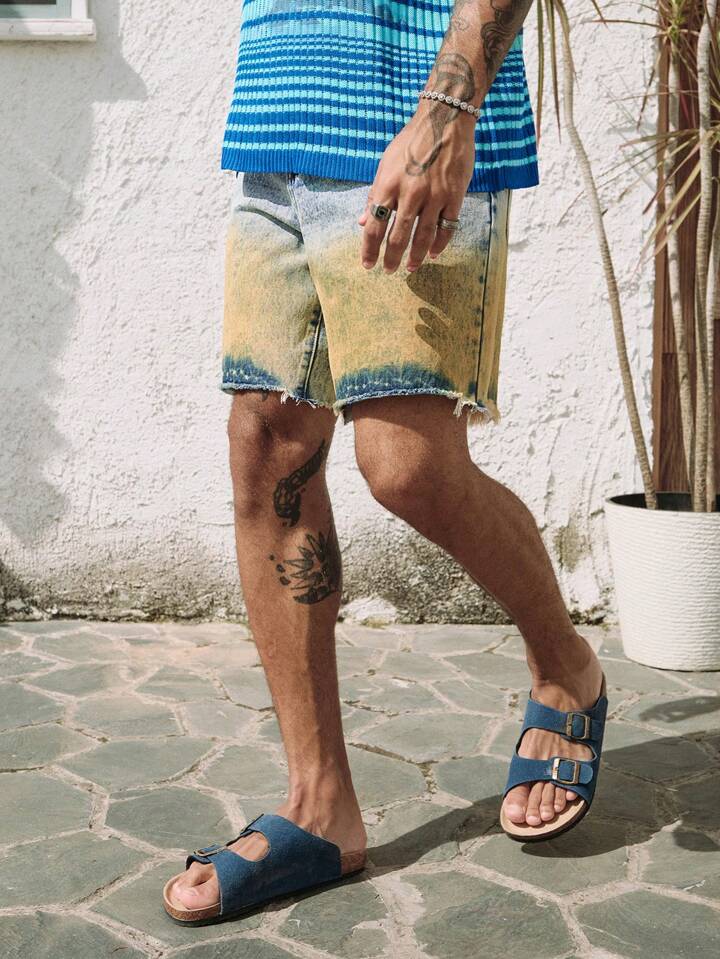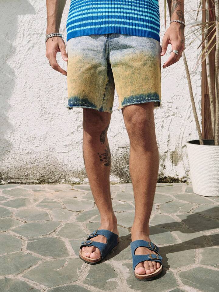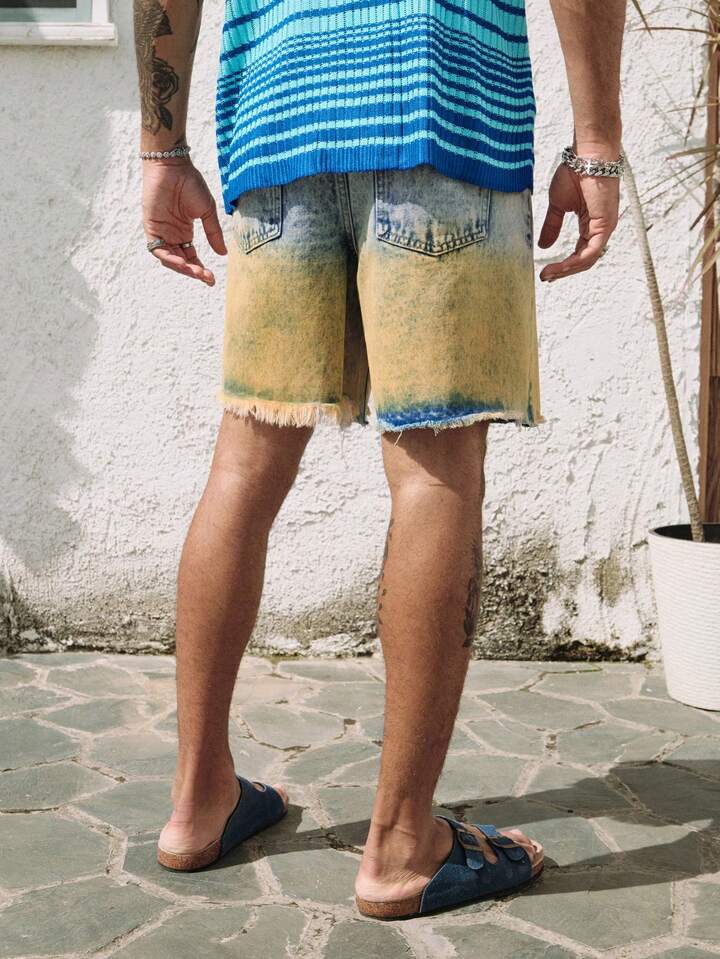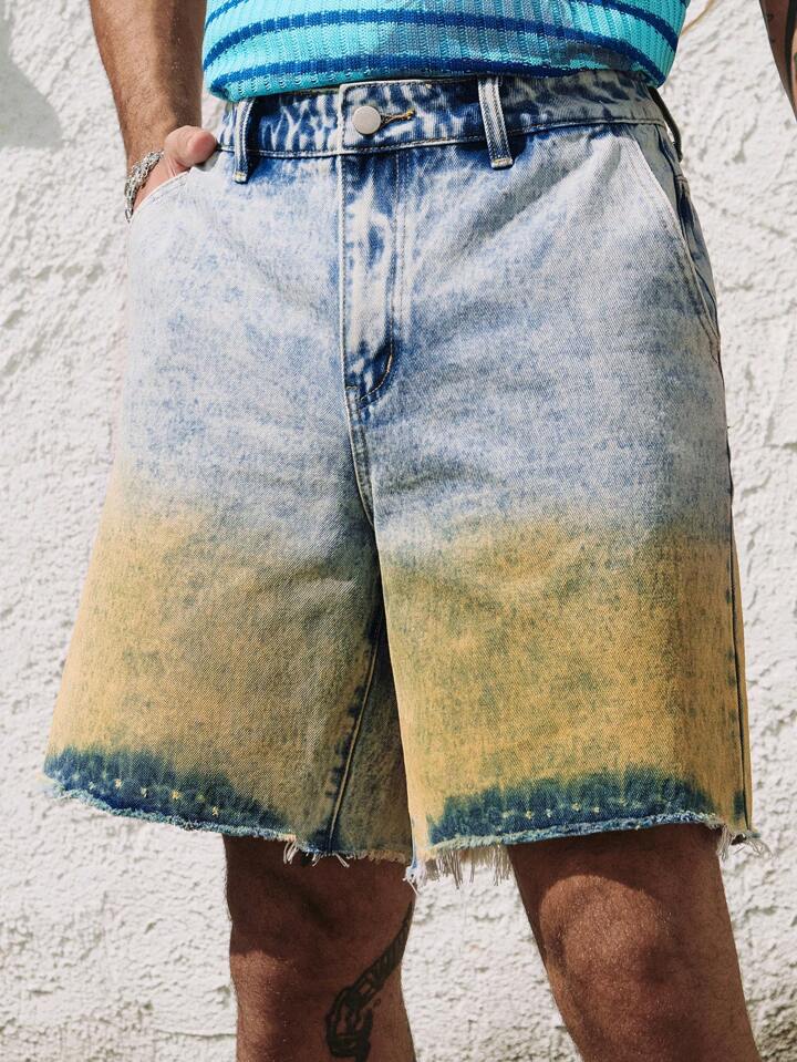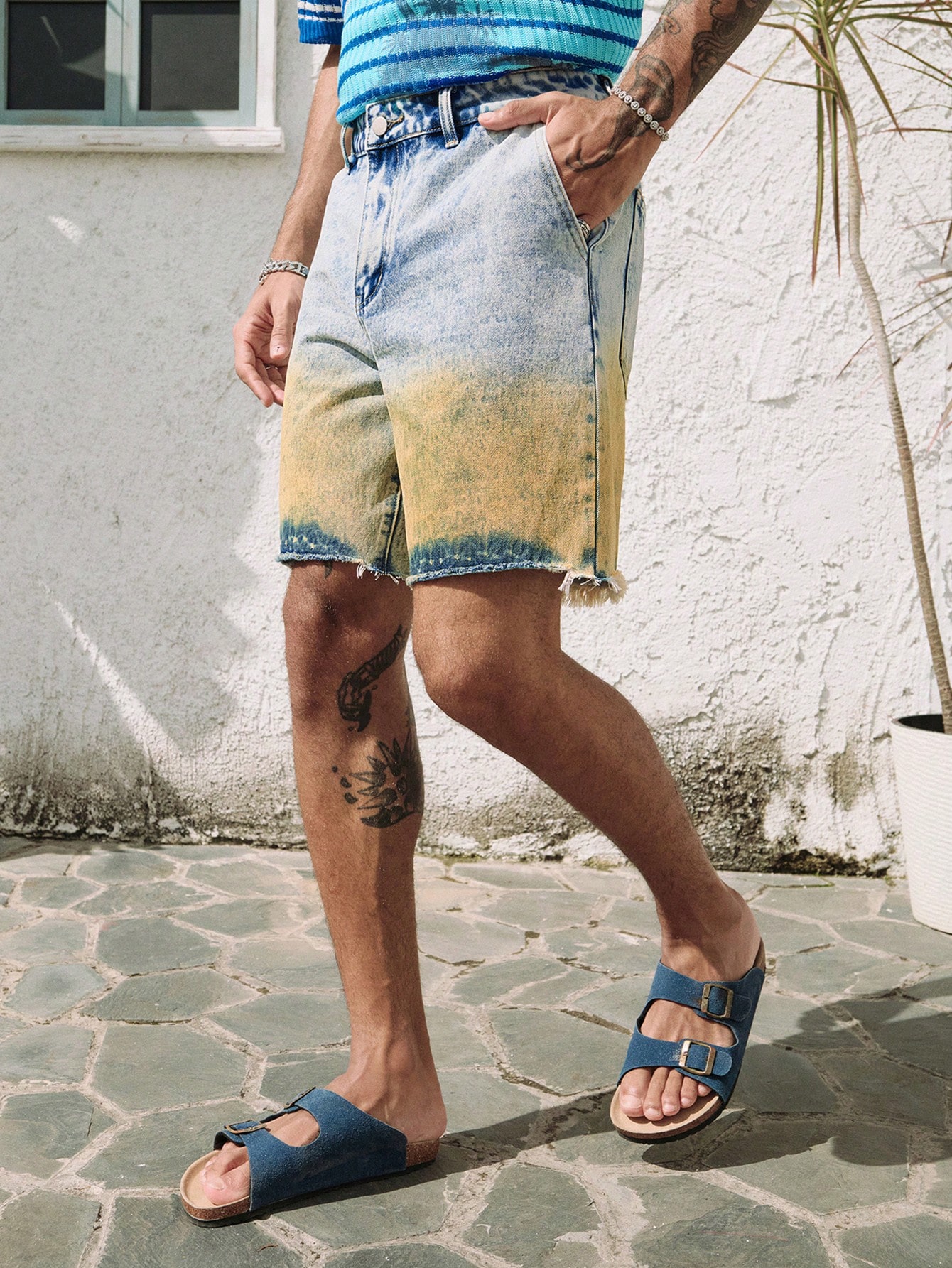 Men's Ombre Print Insert Pocket Loose Casual Denim Shorts