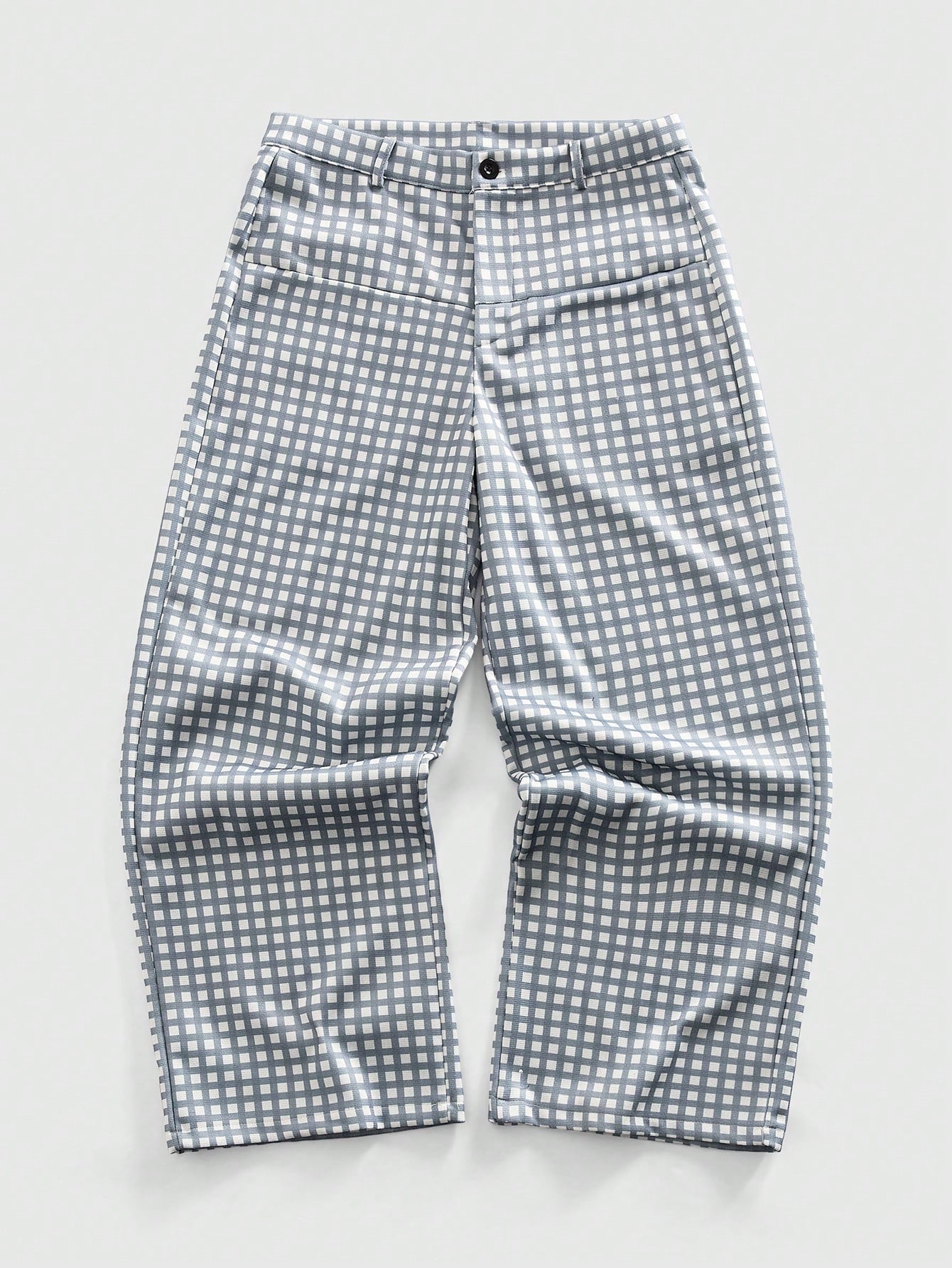 Men's Plaid Casual Straight-Leg Pants, Street Style & College Vibe, Autumn/Winter
