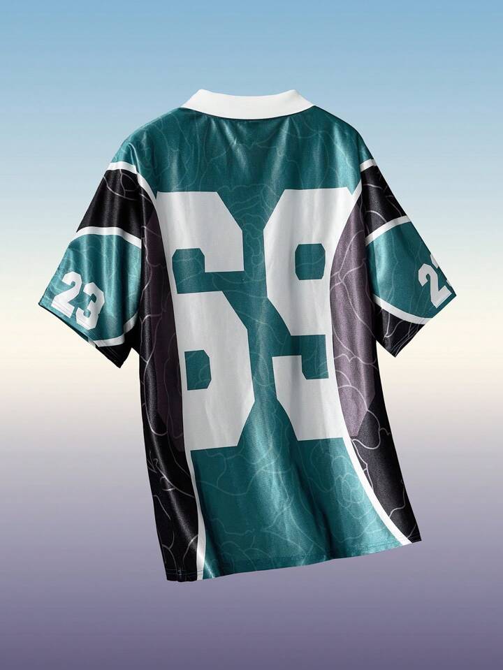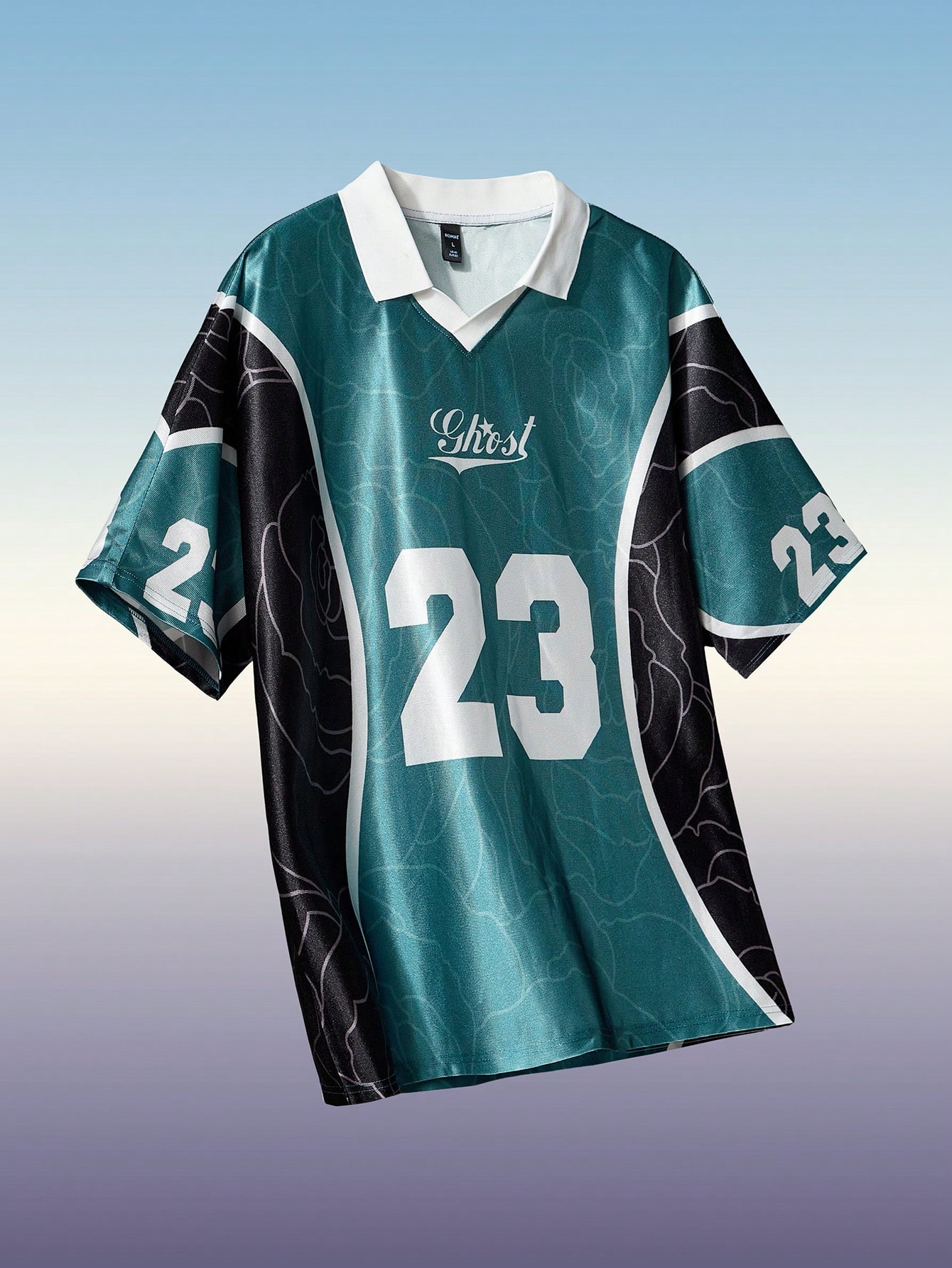 Men's Preppy Contrast Color Block Collar Short Sleeve Letter & Numeral Graphic Casual Polo Shirt, Summer