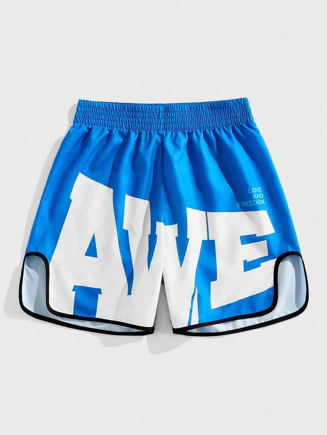 Men's Preppy Letter Print Elastic Waist Shorts, Spring/Summer
