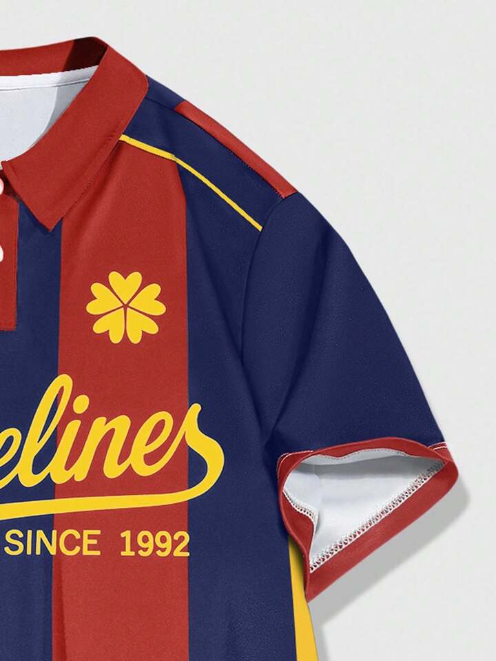 Men's Preppy Letter Striped Short Sleeve Casual Commuter Polo Shirt