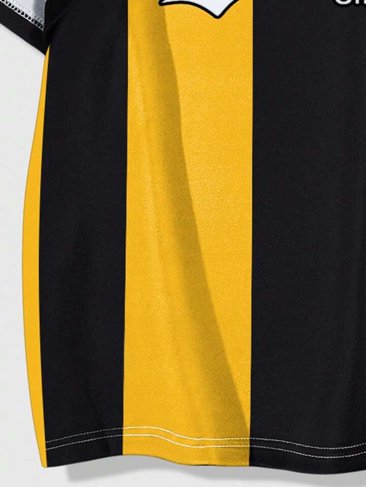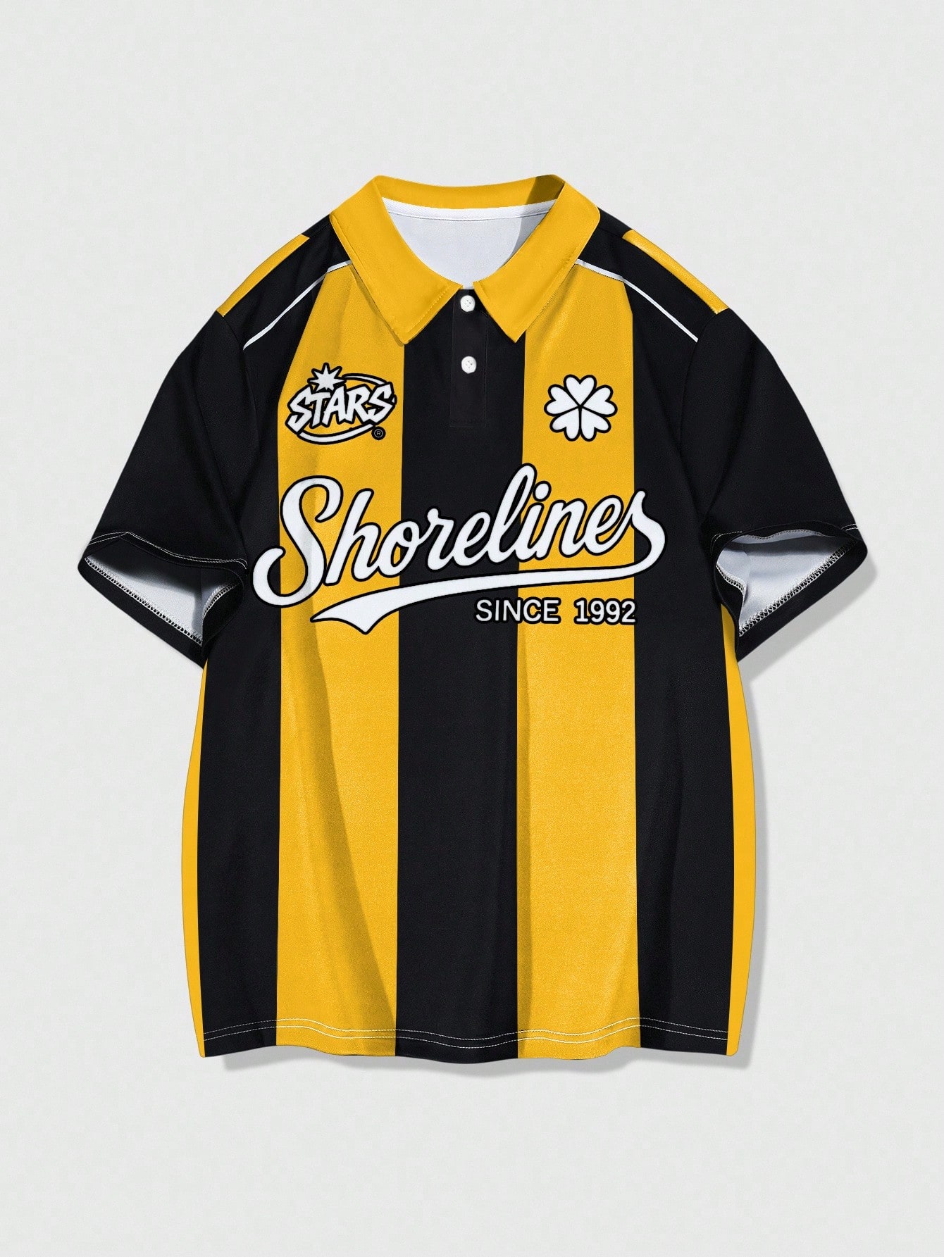 Men's Preppy Letter Striped Short Sleeve Casual Commuter Polo Shirt